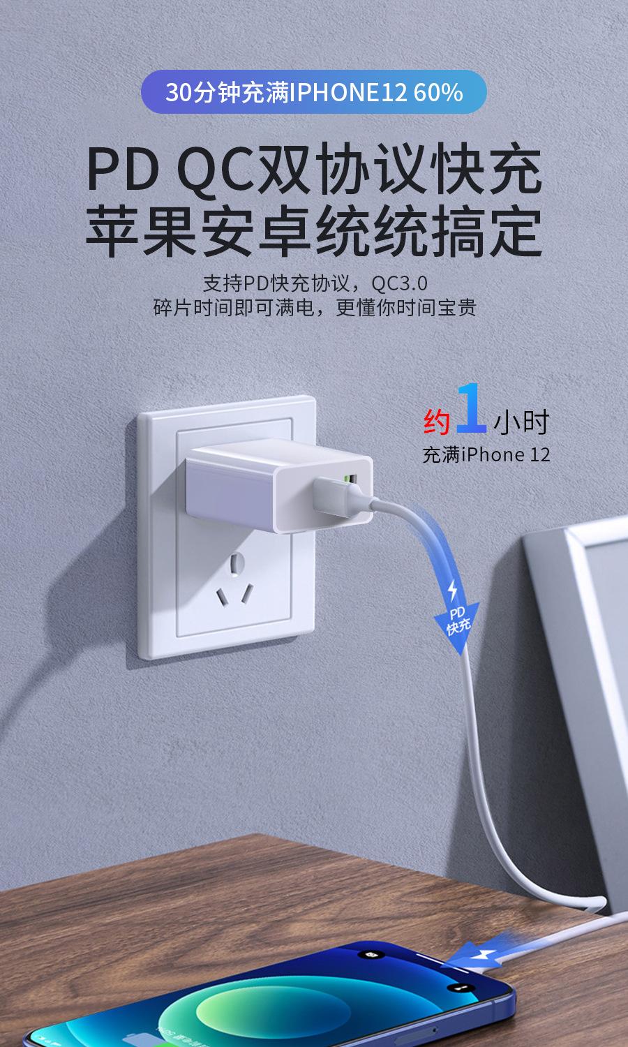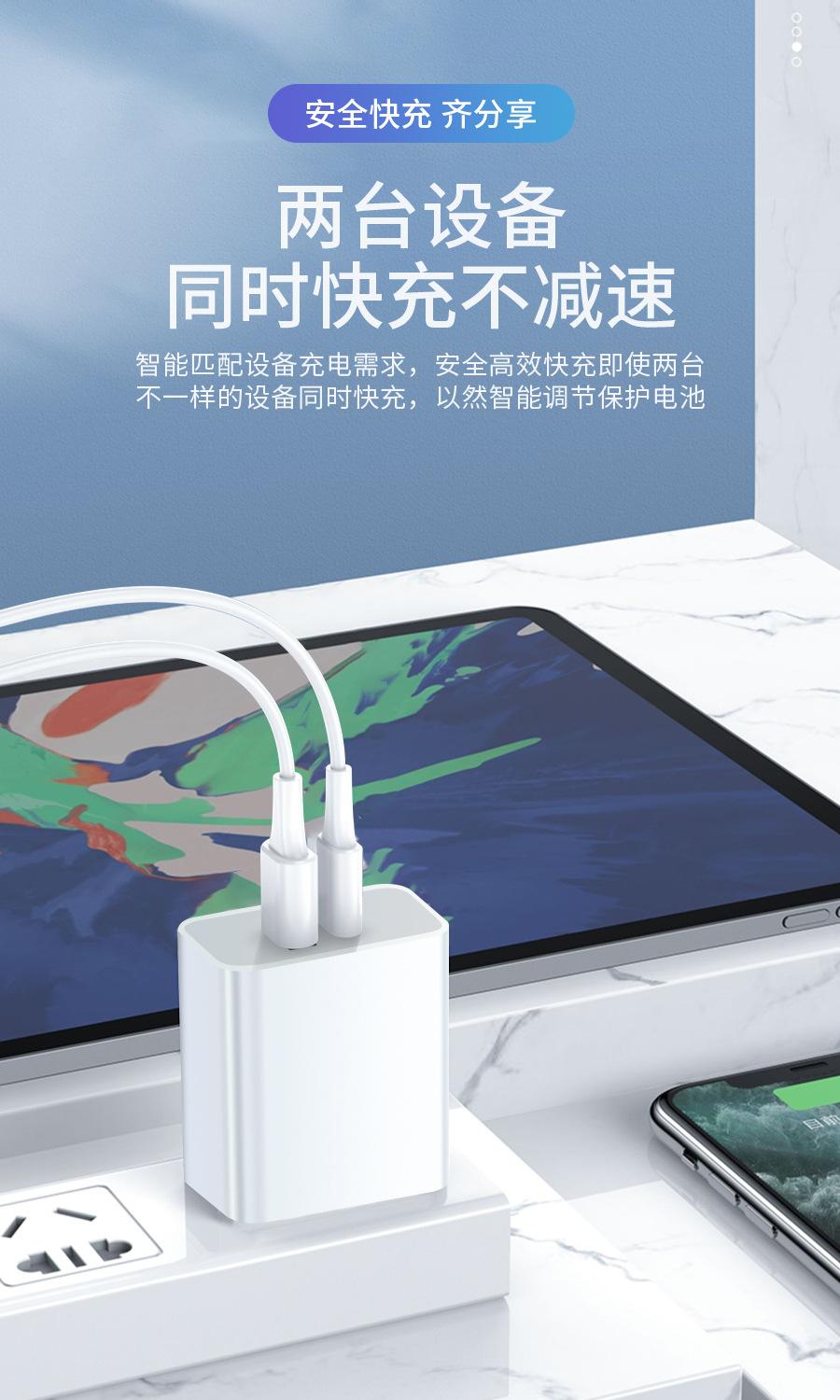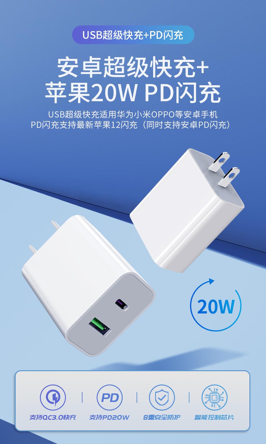 Cargador de Doble Puerto de 20W Pd+Qc3.0 Adecuado para Carga Rápida de 18W Apple Tipo-C Cabezal de Carga para Teléfono Móvil Android Transfronterizo