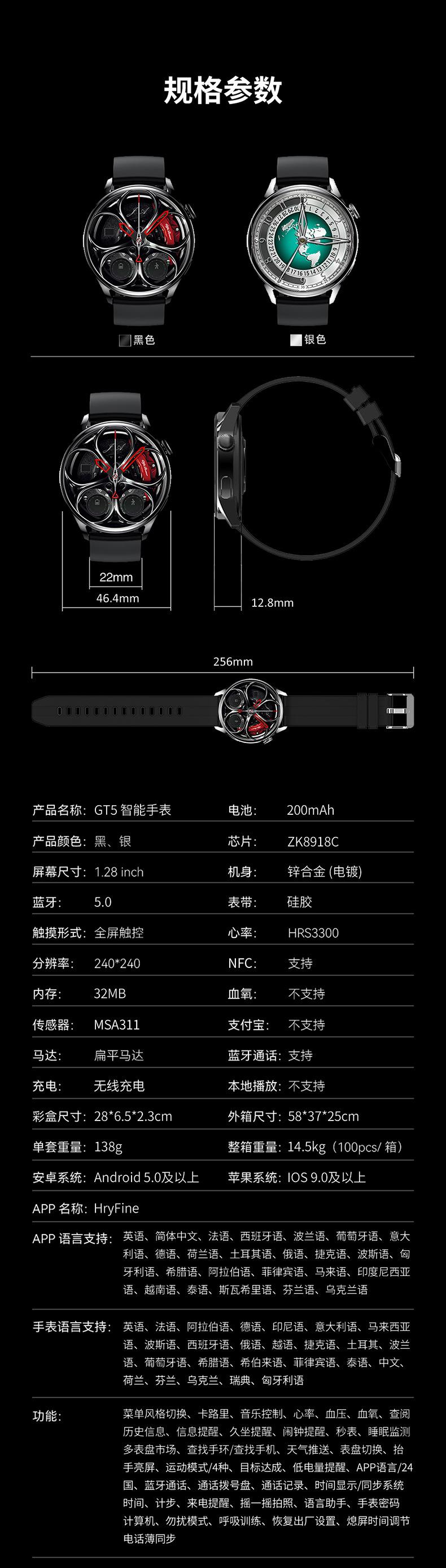Reloj inteligente GT5 transfronterizo frecuencia cardíaca ejercicio podómetro llamada Bluetooth control de acceso NFC