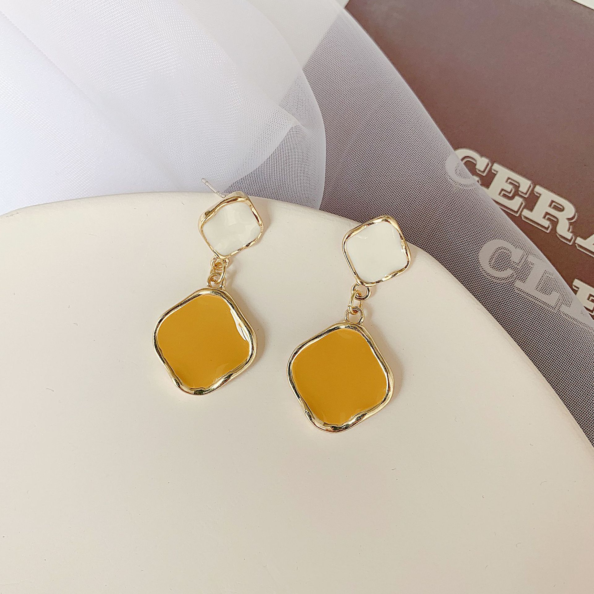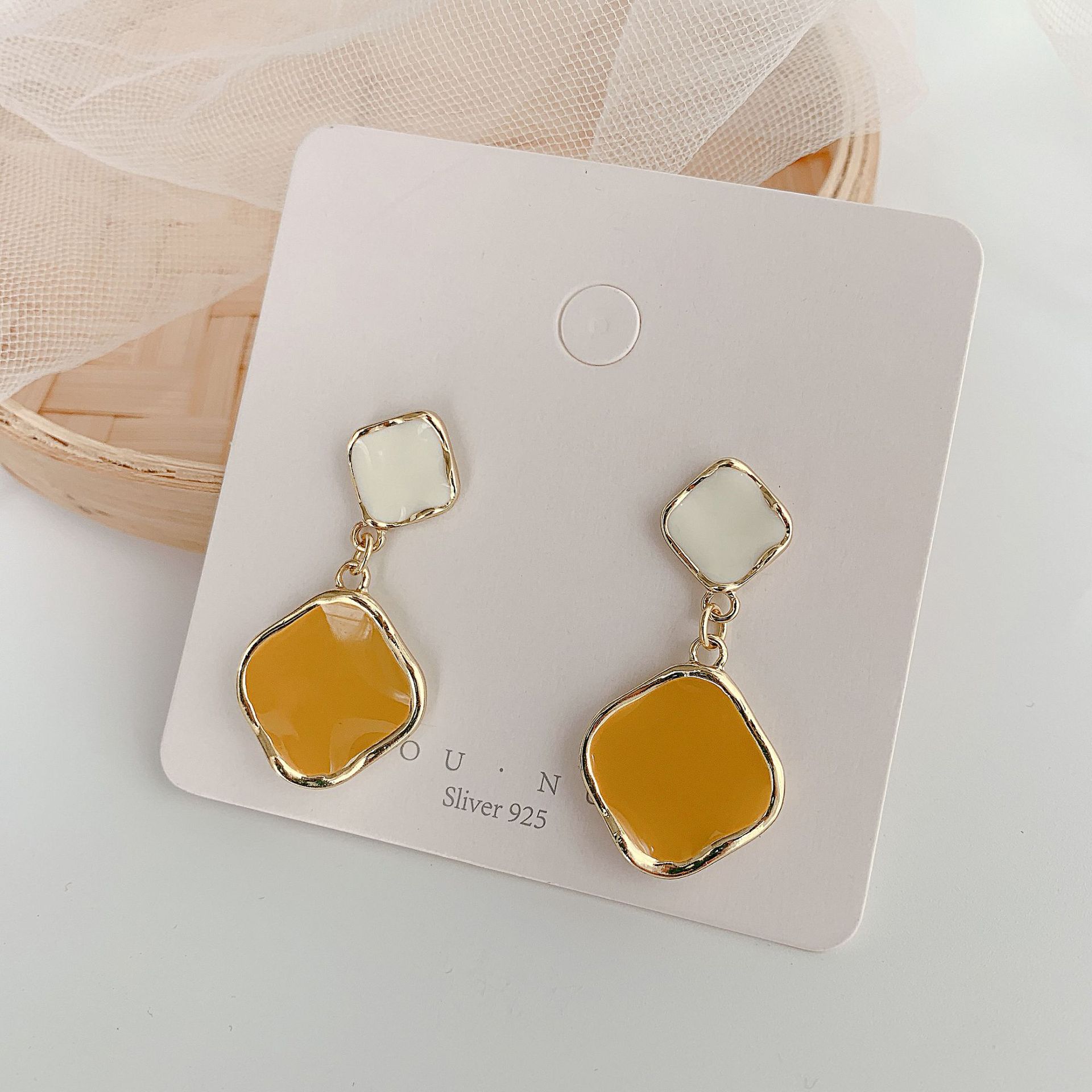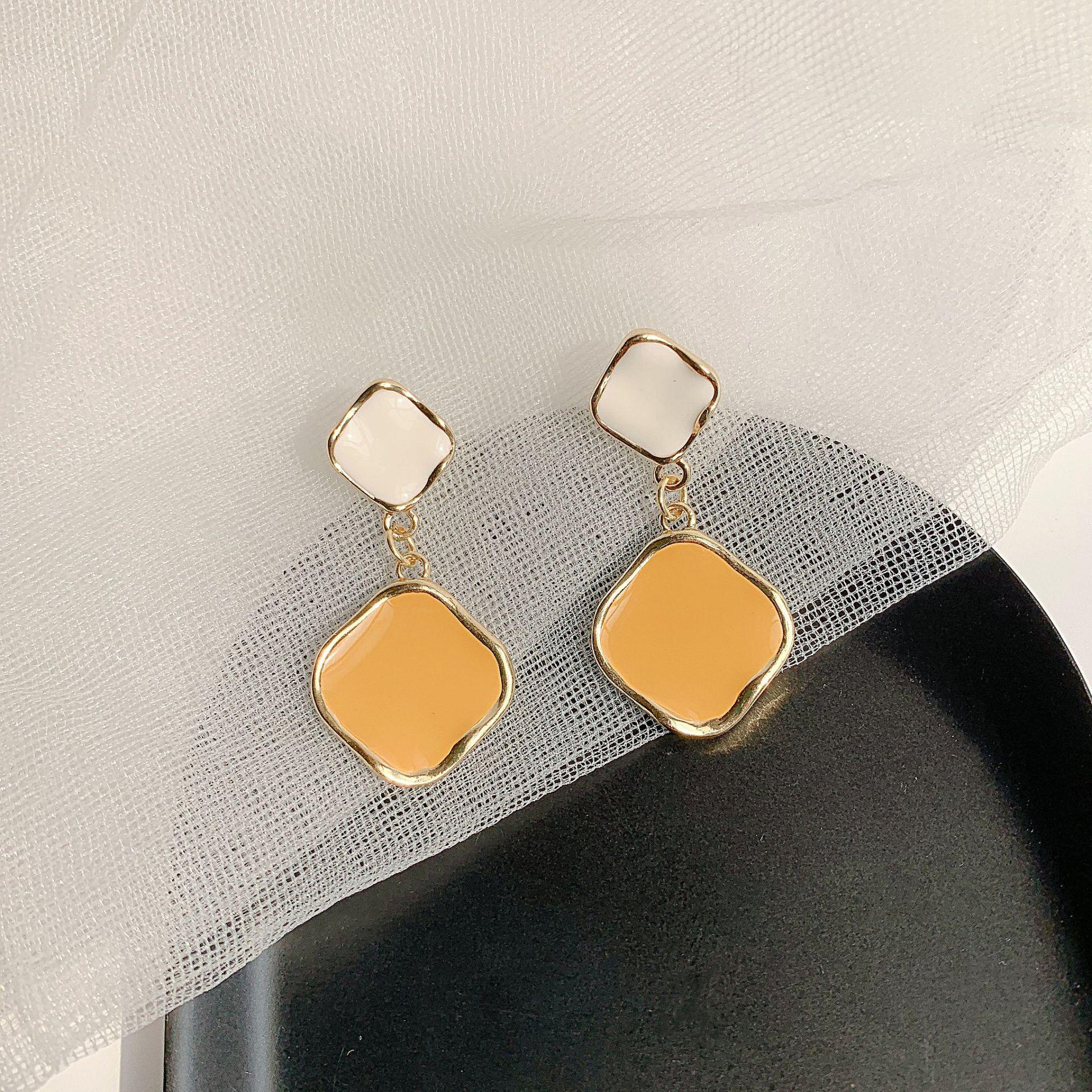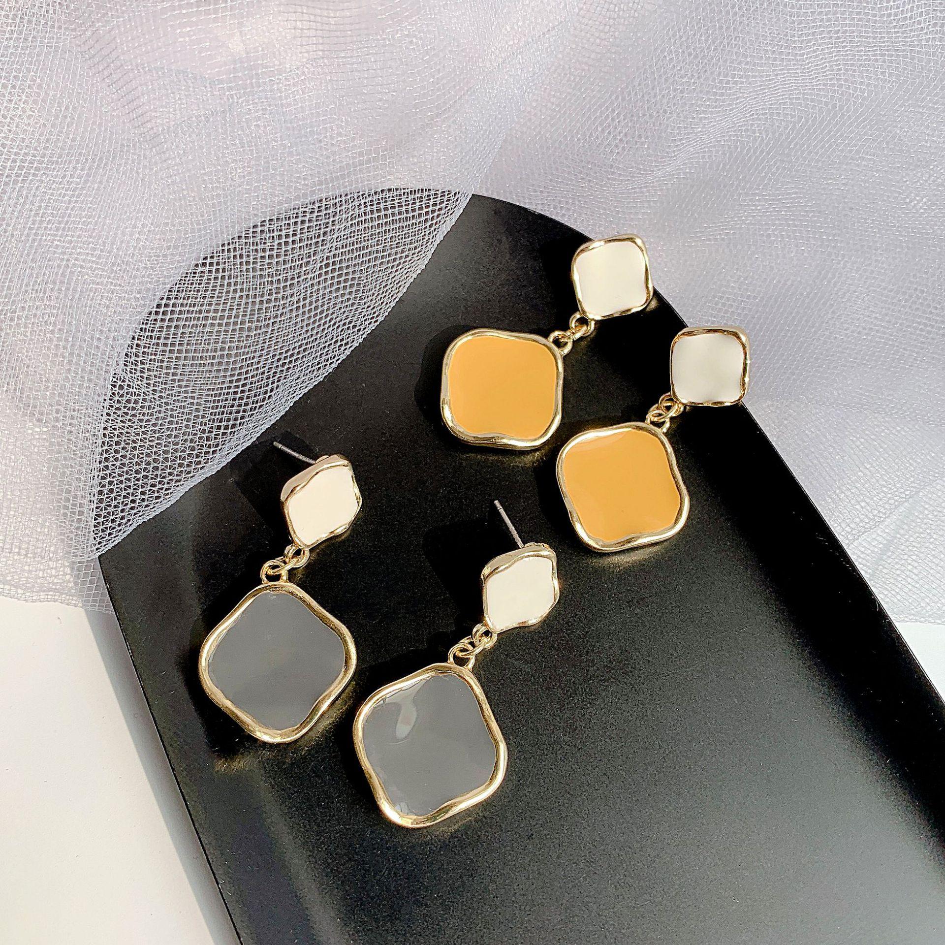 Silver needle gray stud earrings, Silver needle yellow earrings, Gray ear clip style, Yellow ear clip