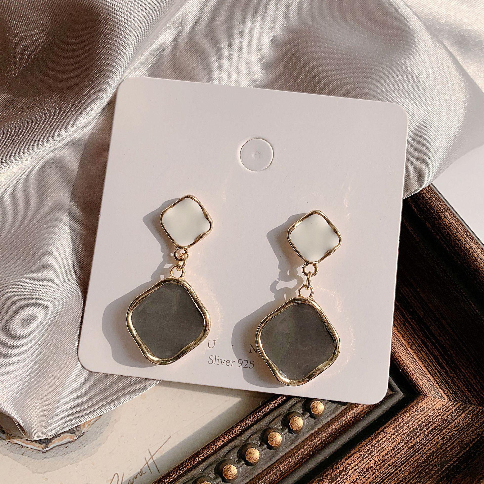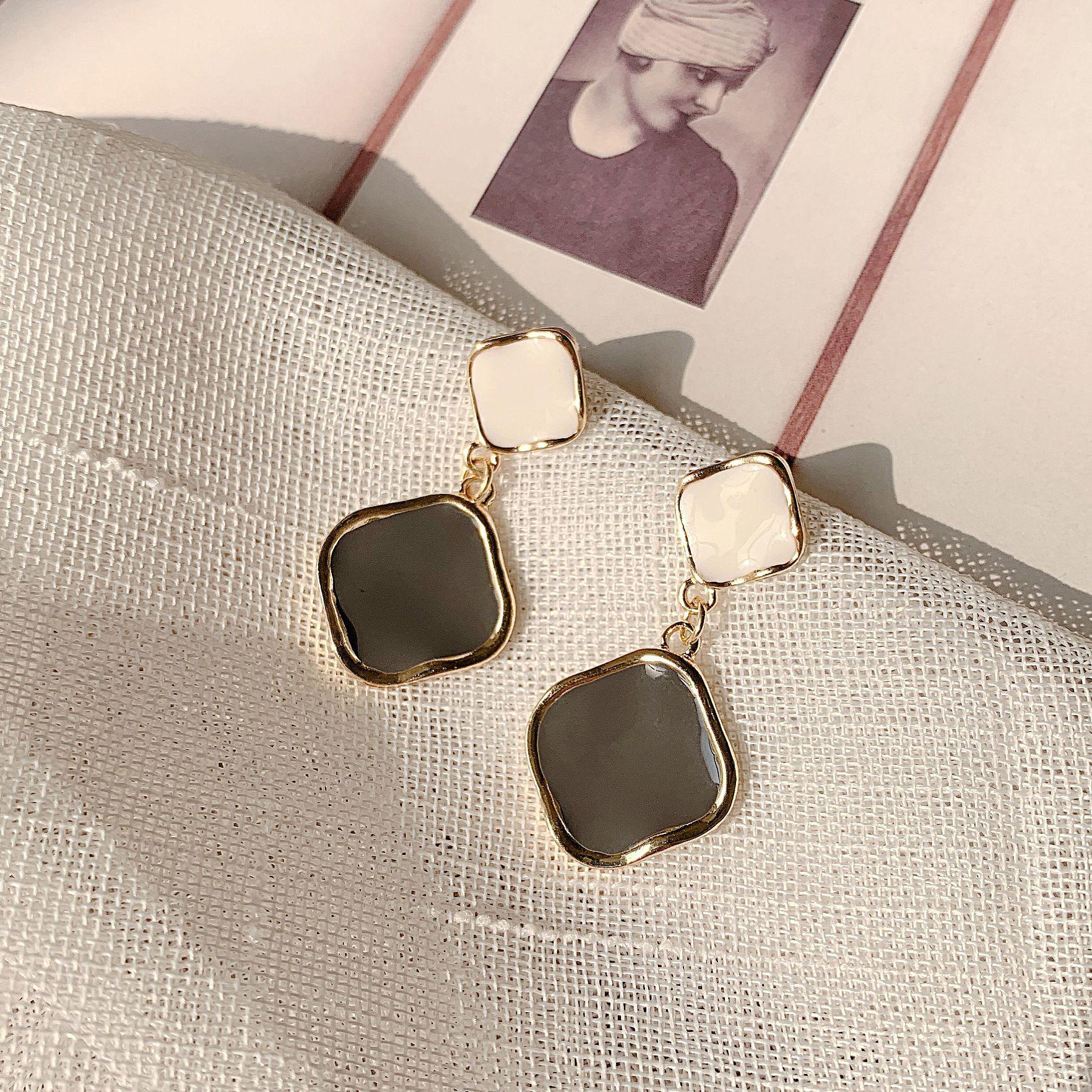 Aretes de Aguja de Plata S925 Estilo Coreano Simple Geométrico Color Contrastante Retro Aretes para Mujer Elegantes Versátiles Aretes para Mujer