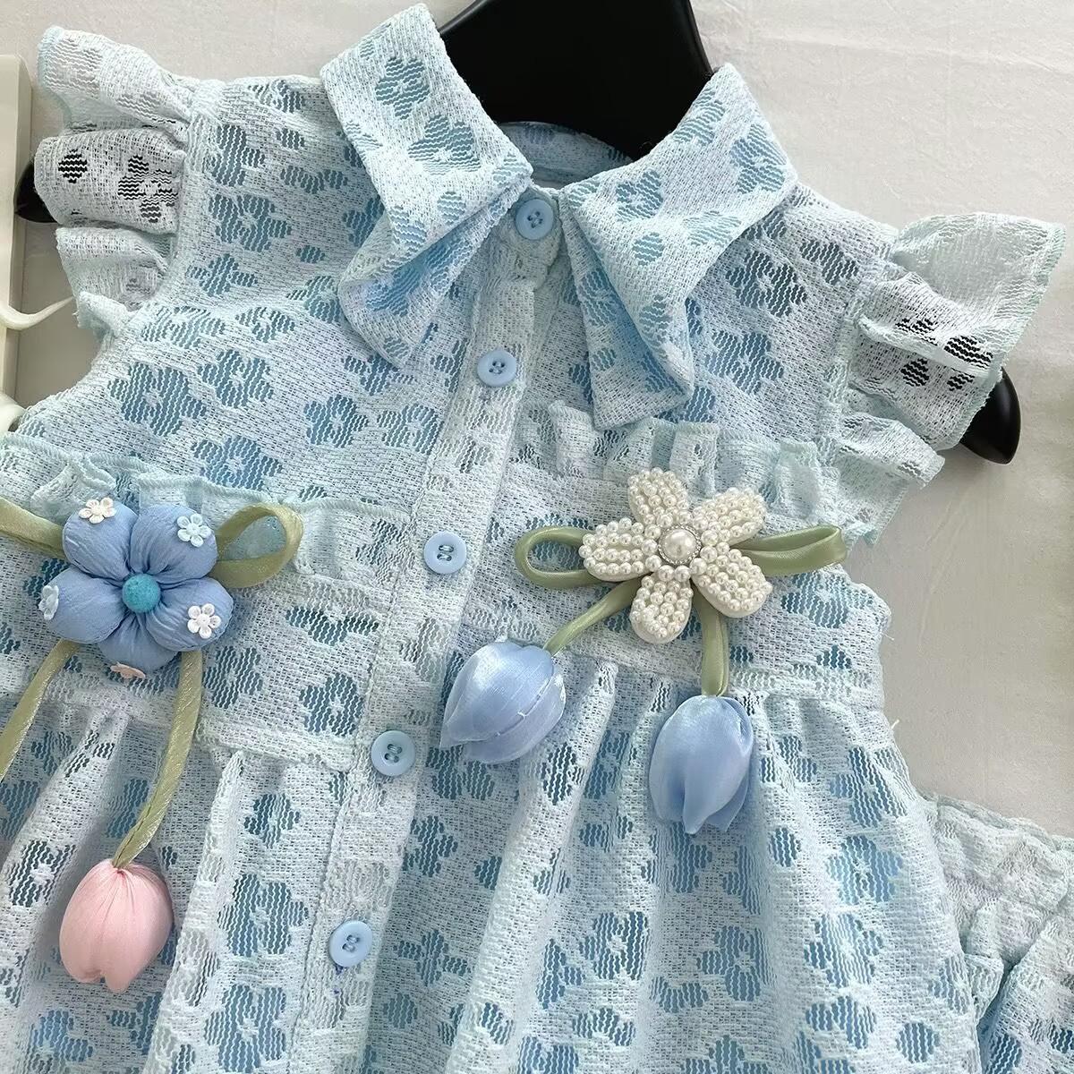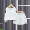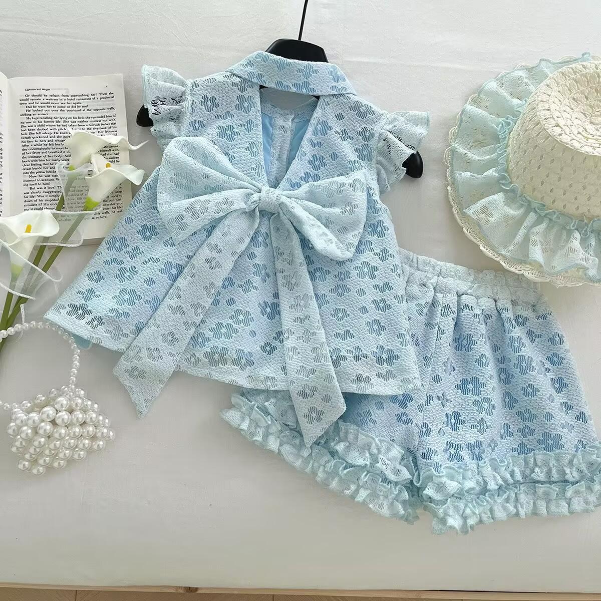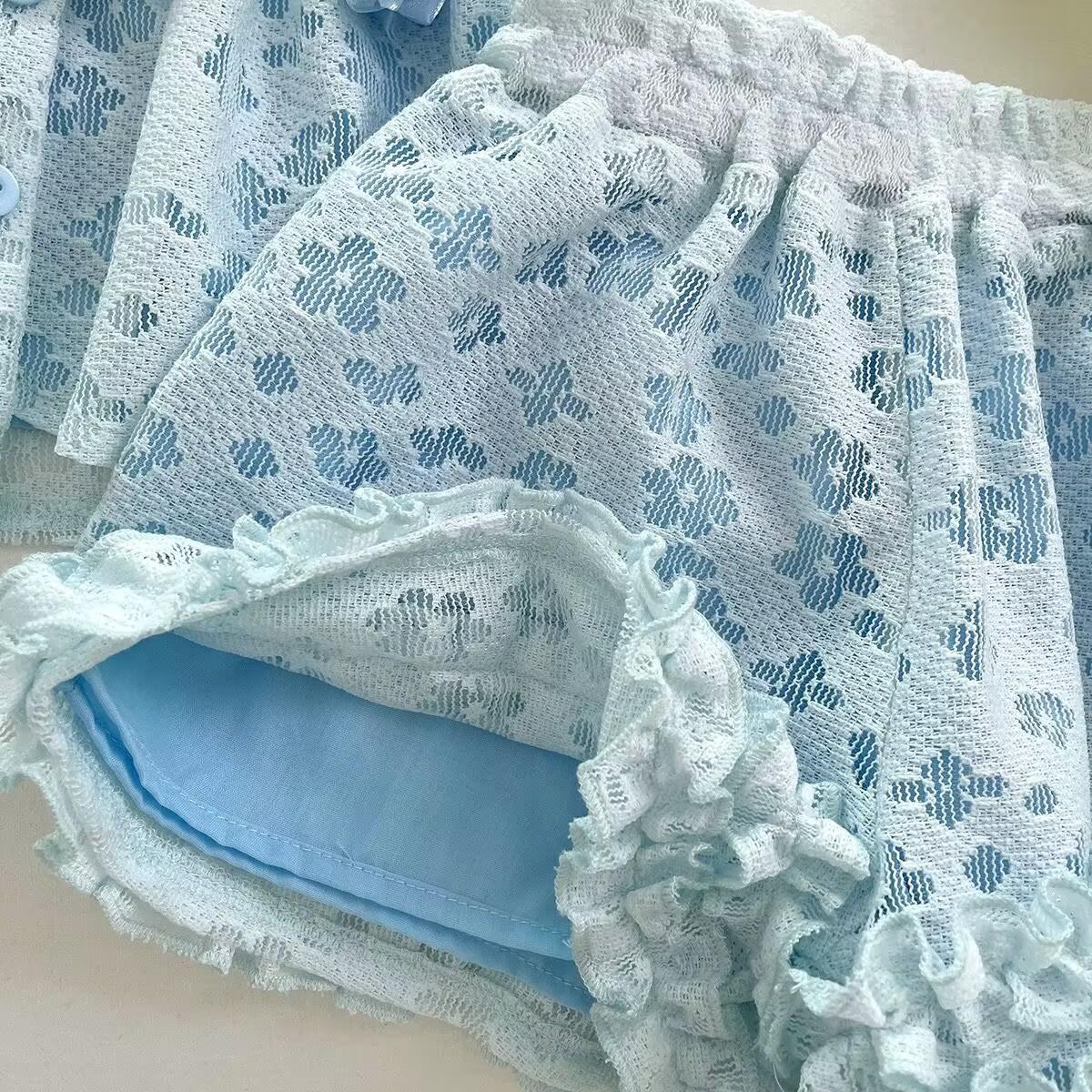 Traje de Verano para Niñas 2025 Nuevo Top Chaleco de Encaje con Flores Shorts de Encaje Bebé Niña Princesa Conjunto de Dos Piezas