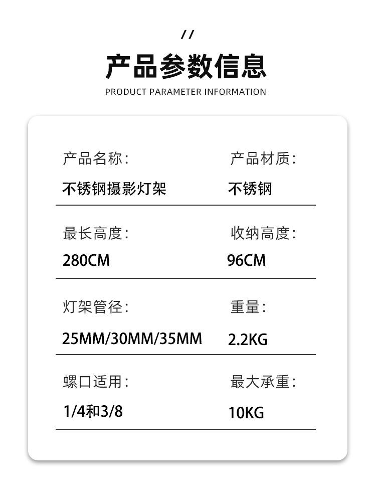 2.8m stainless steel light stand (upgraded painted surface)