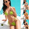 Traje de baño transfronterizo para todo tipo de cuerpo para mujer Verano 2024 Nuevo Europeo y Americano Color Sólido Cuello con Cordones Bikini de Playa Top de Traje de Baño