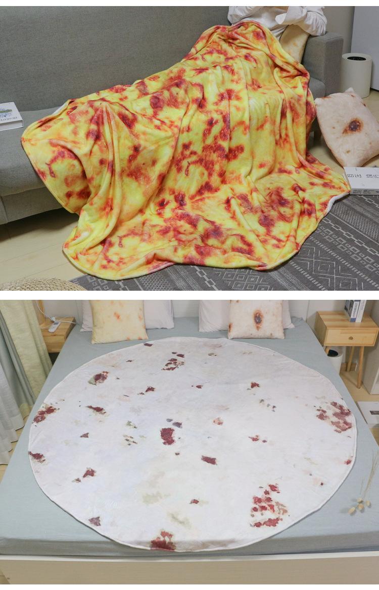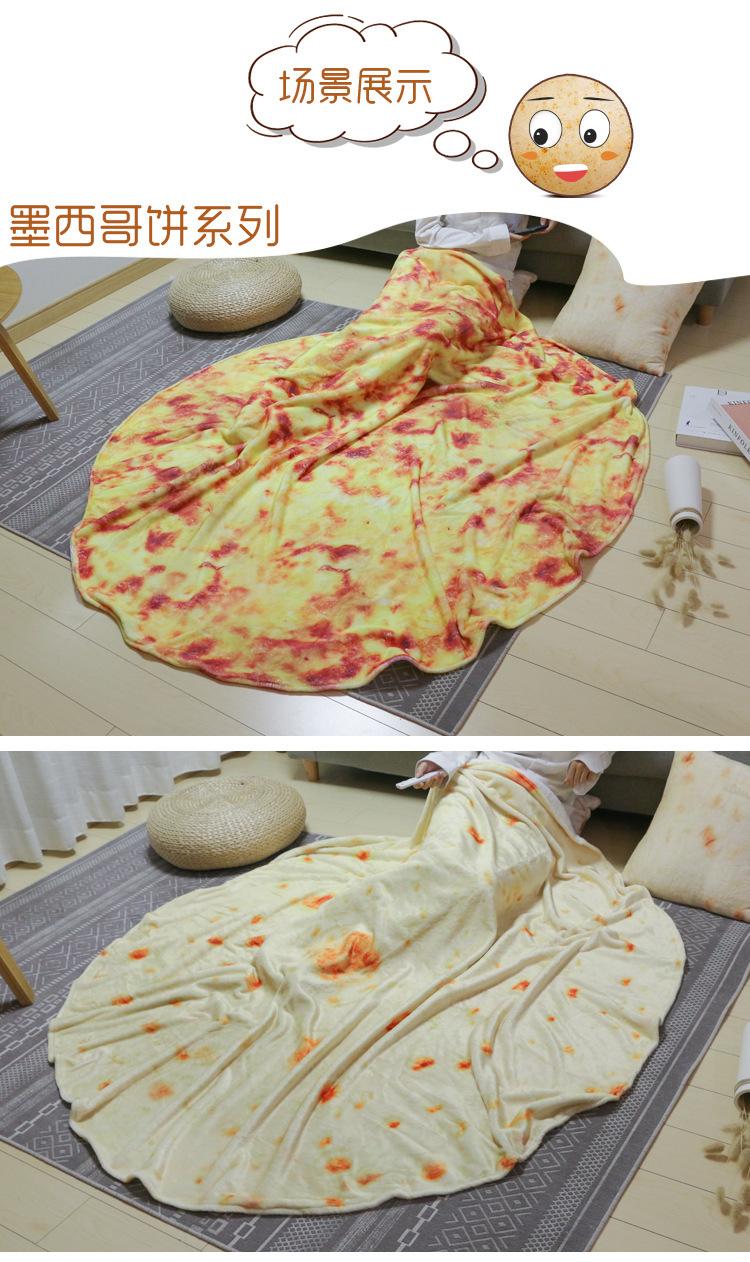 Manta de franela roja divertida de Internet, manta de pizza con burrito, manta de forro polar coral, manta de aire acondicionado al por mayor