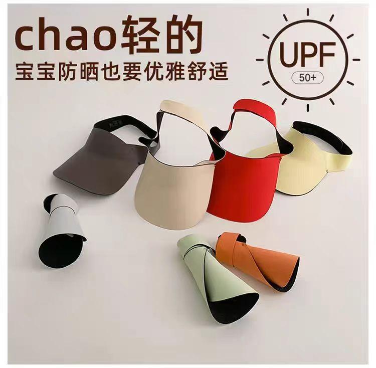 Nuevo sombrero de copa vacía con visera para el sol de verano para niños, sombrero de sol de una pieza de color caramelo para padres e hijos para viajes, sombrero de playa transpirable