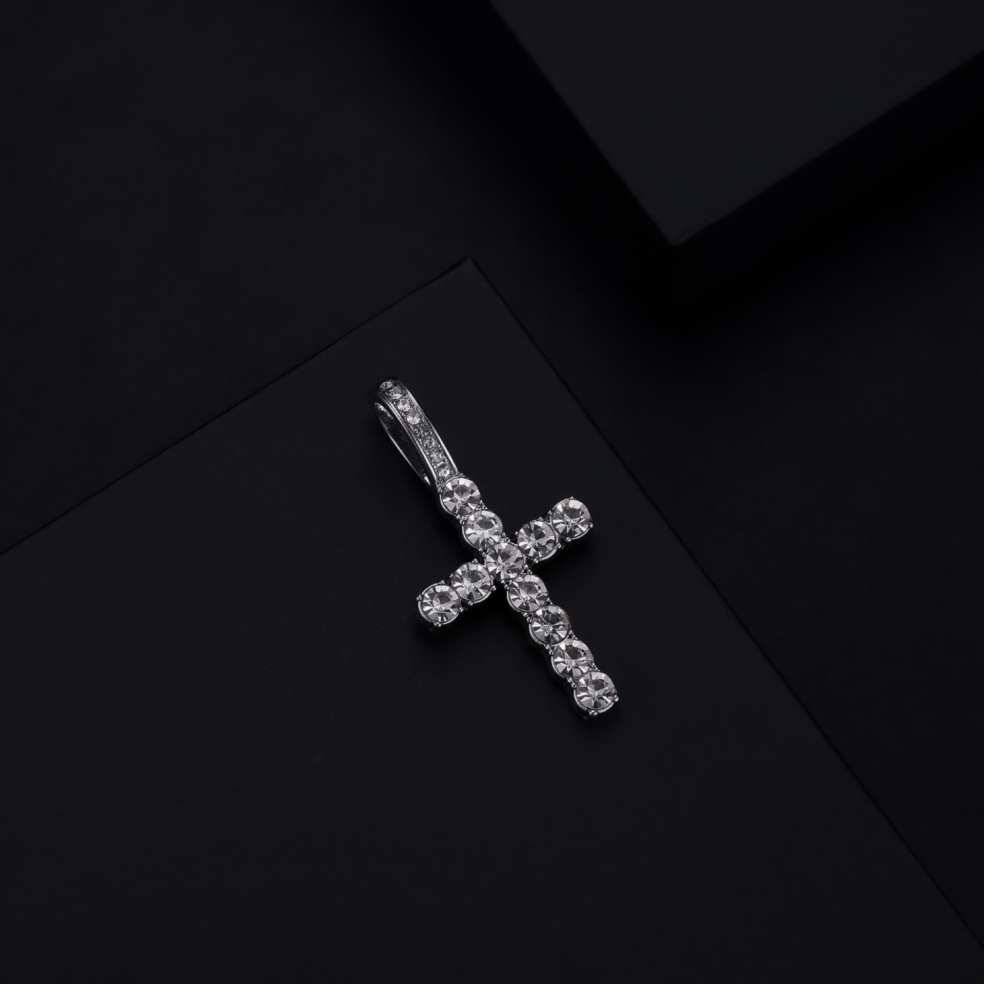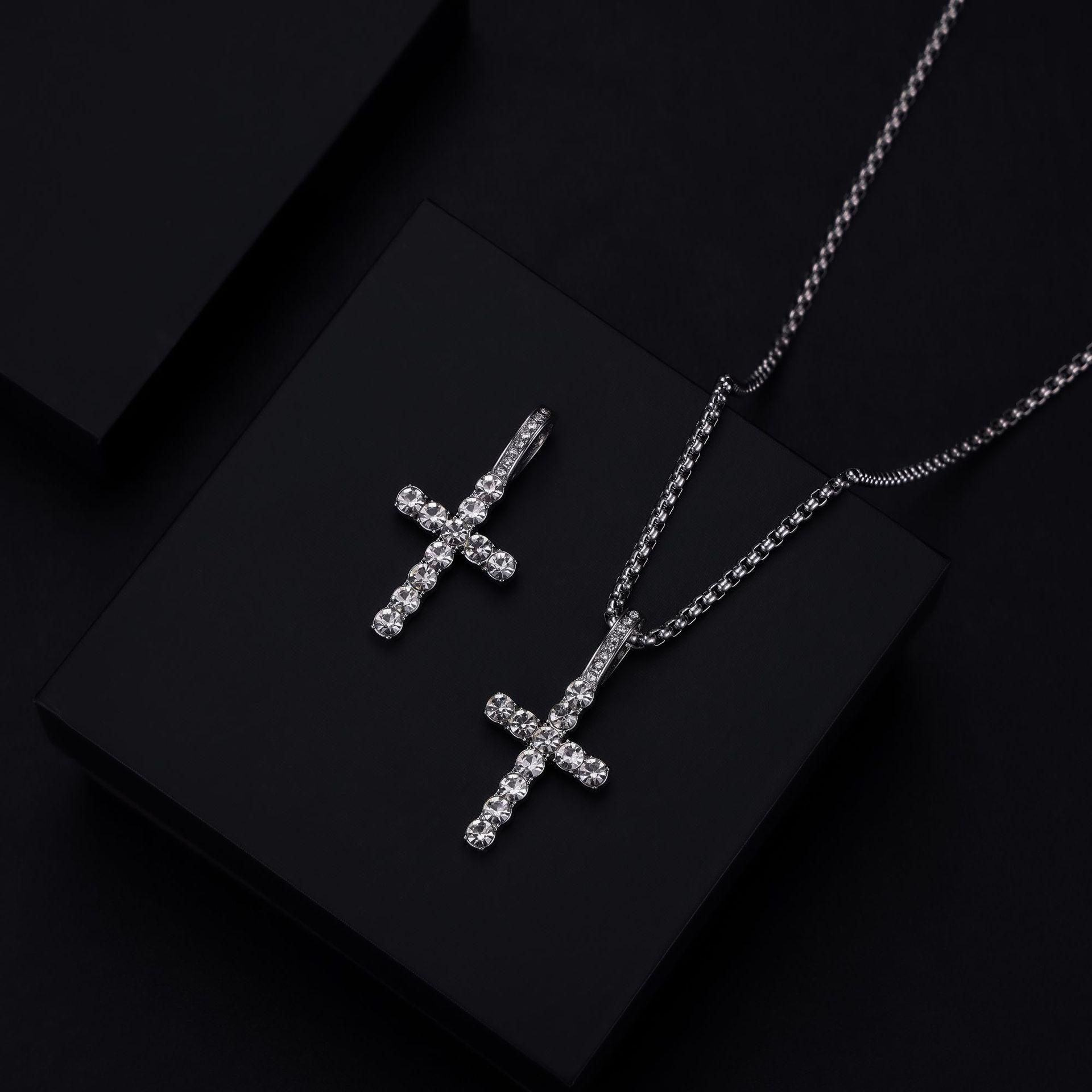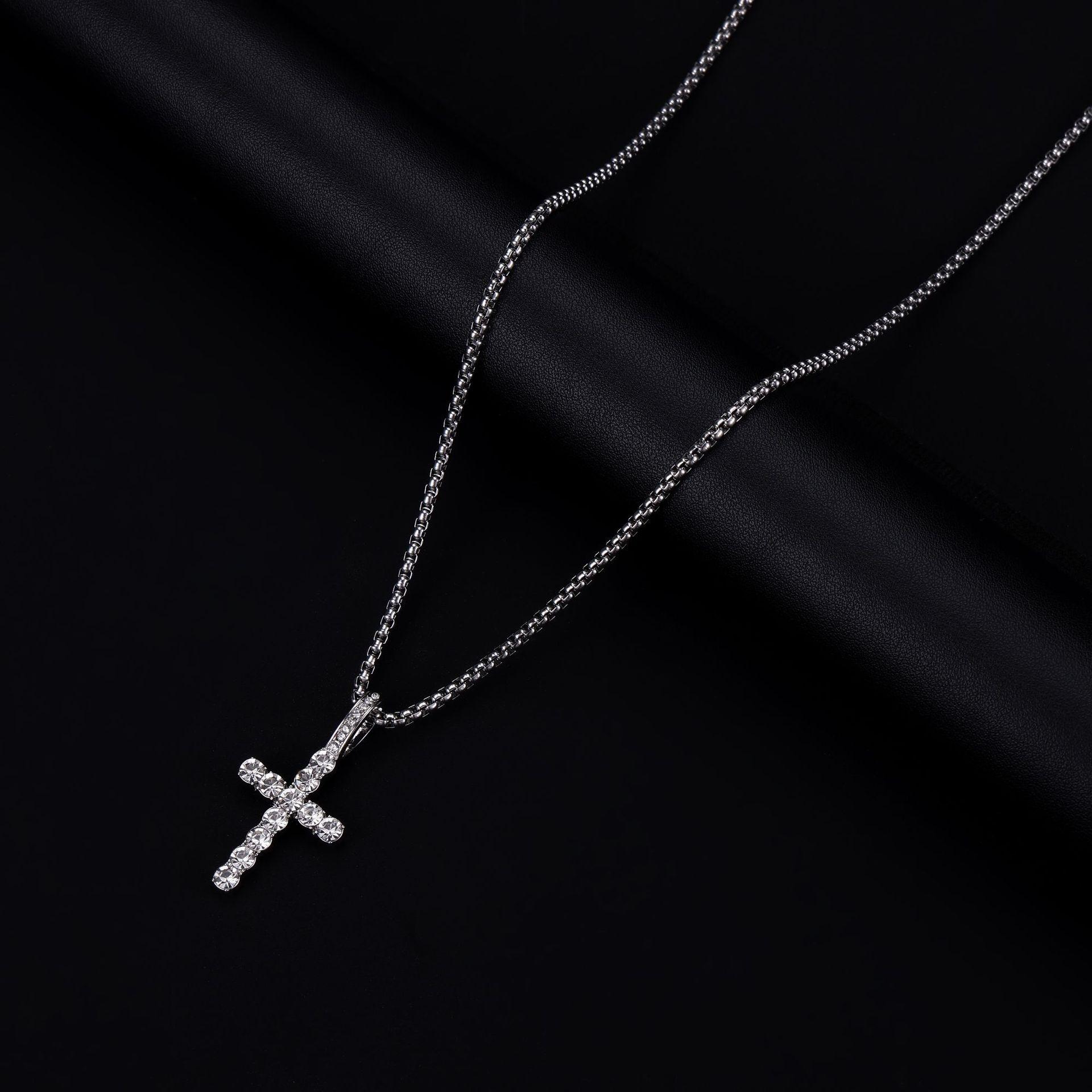 Collar colgante de cruz de acero de titanio con diamantes transfronterizos, cadena de suéter, accesorios de nicho, hip hop, personalidad, retro para hombre