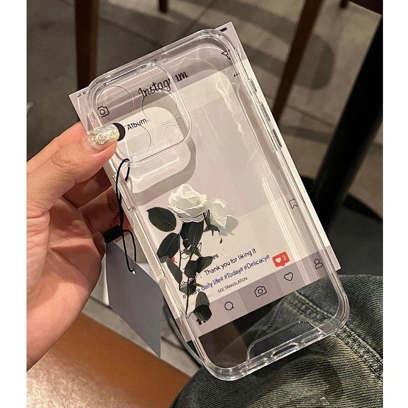 Funda estilo Ins White Rose para Apple 16PROMAX, transparente, de lujo, suave, para iPhone 15, 14 y 13.