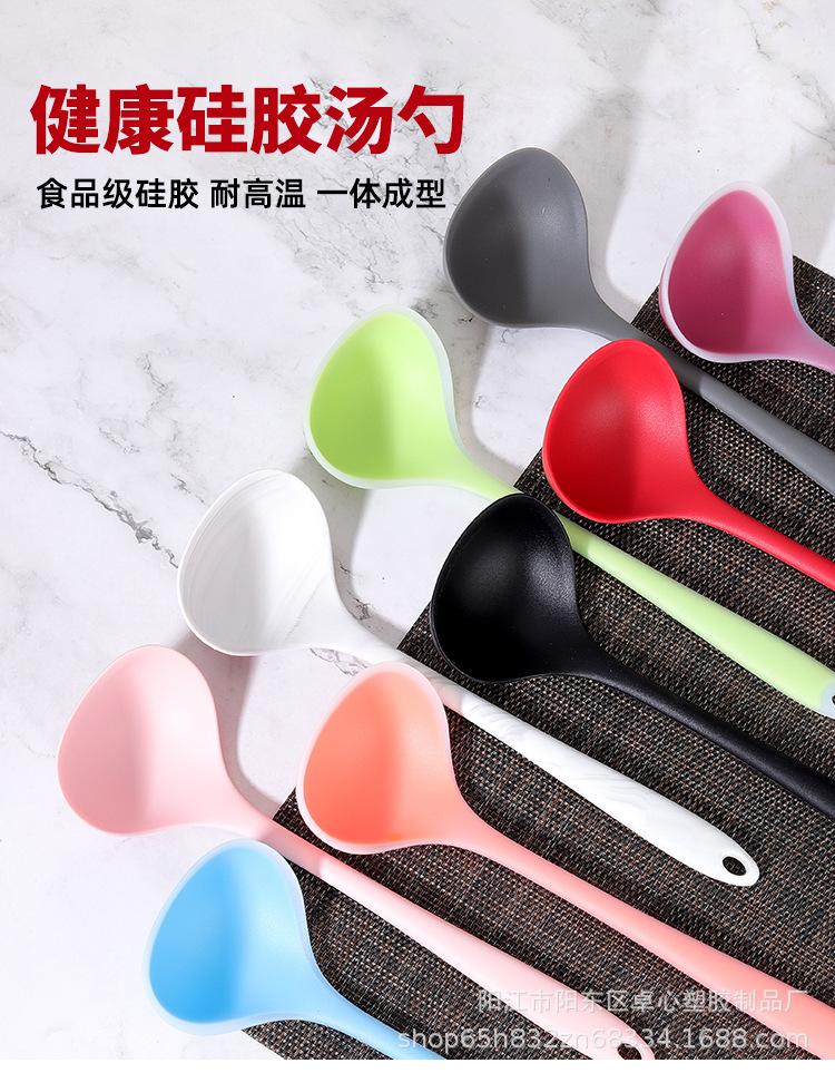 Cuchara para sopa todo en uno de silicona de grado alimenticio resistente a altas temperaturas en stock concha para sopa cocina herramienta de cocina antiadherente ensalada