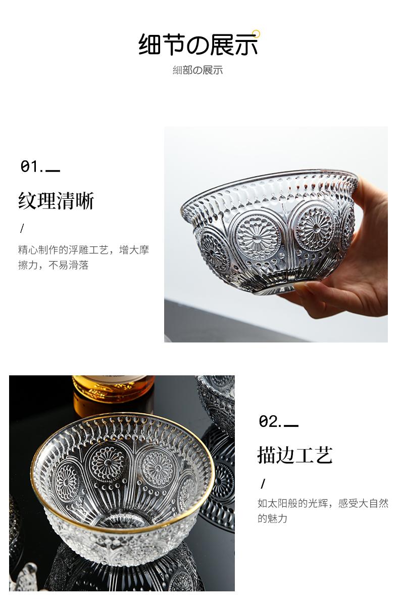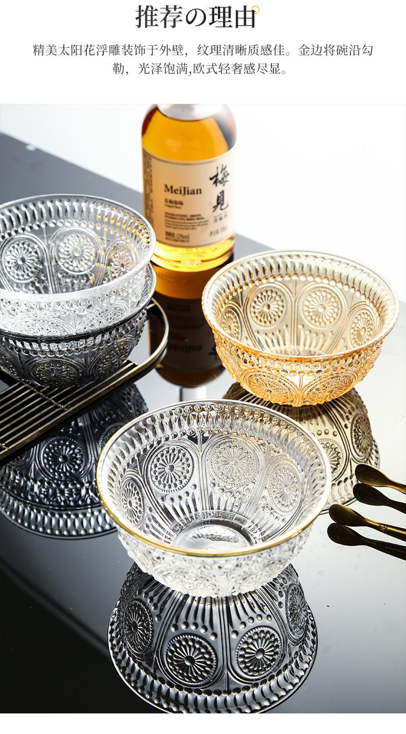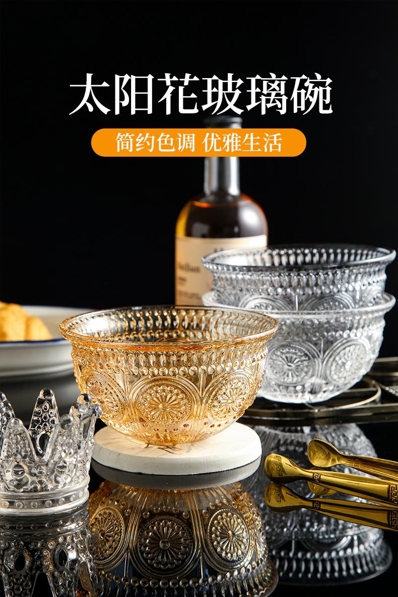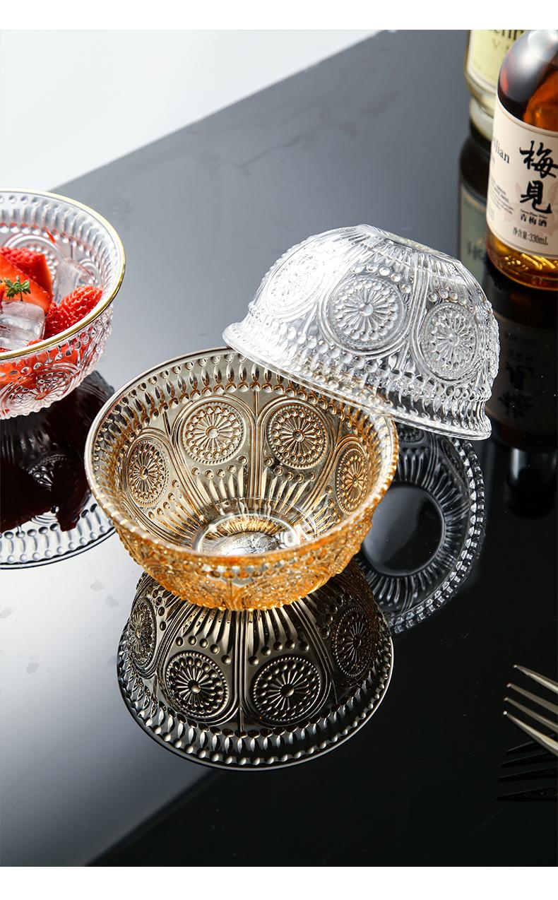 Tazón de vidrio repujado vintage desayuno postre tazón pequeño rojo neto ensaladera vajilla creativa Phnom Penh tazón de girasol