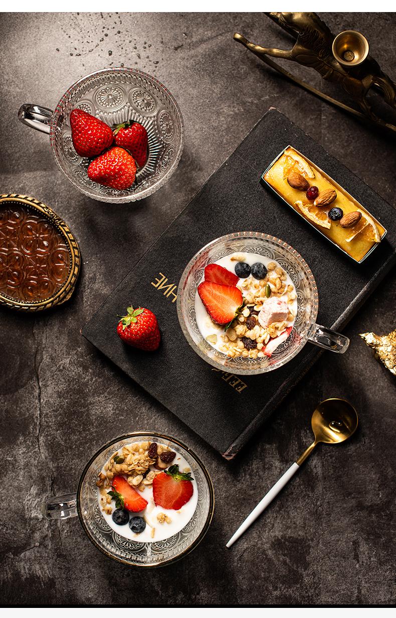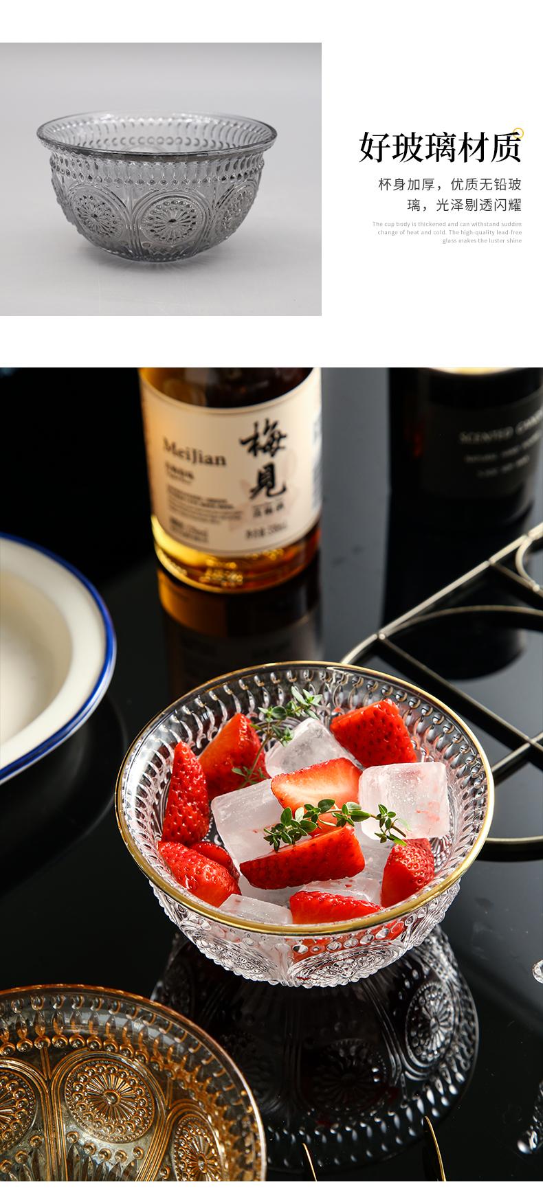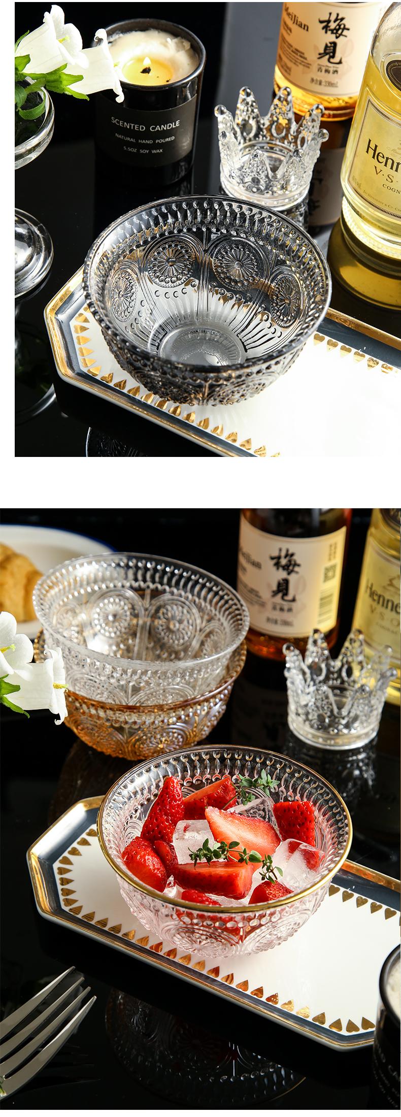 Tazón de vidrio repujado vintage desayuno postre tazón pequeño rojo neto ensaladera vajilla creativa Phnom Penh tazón de girasol