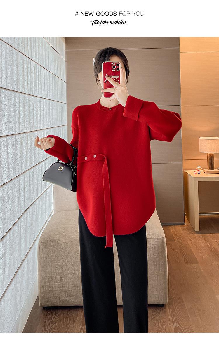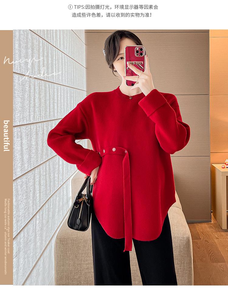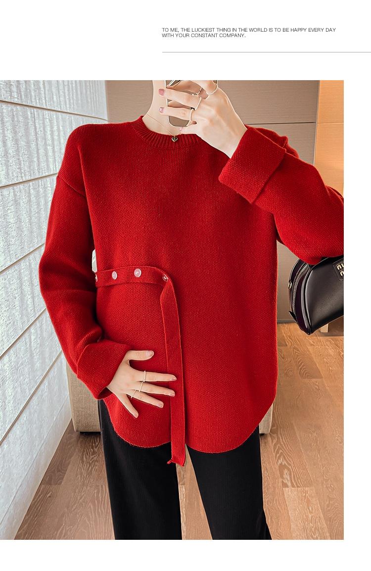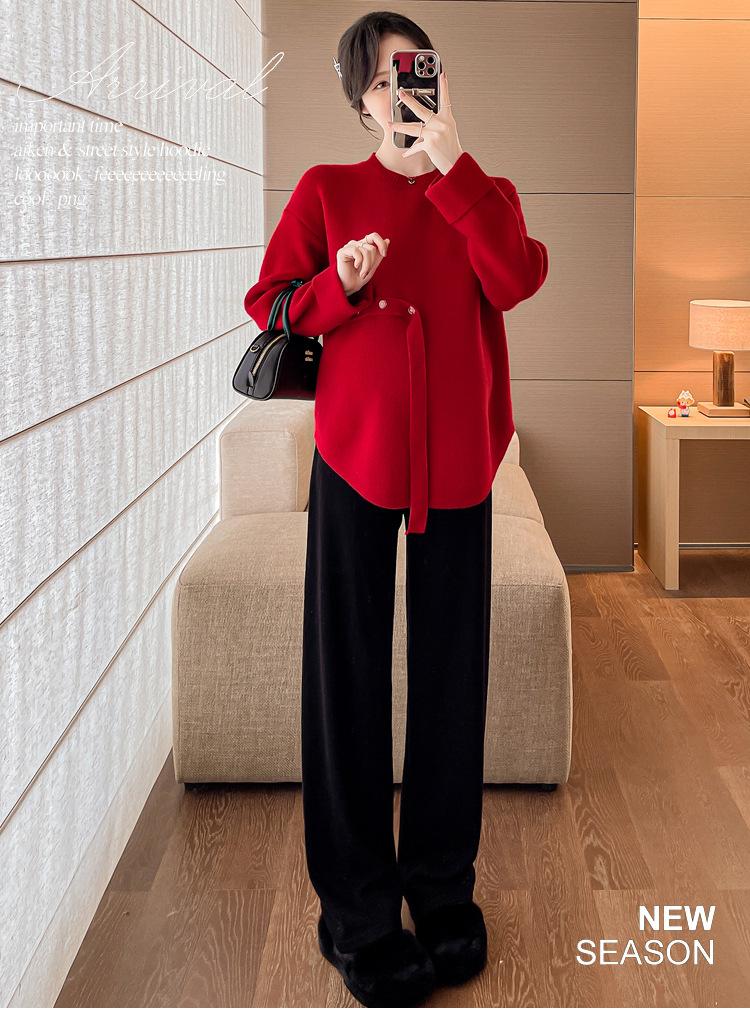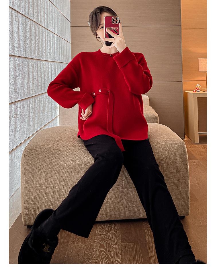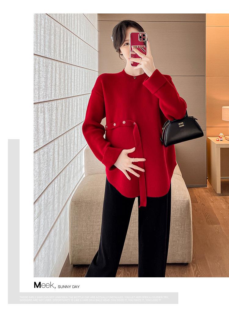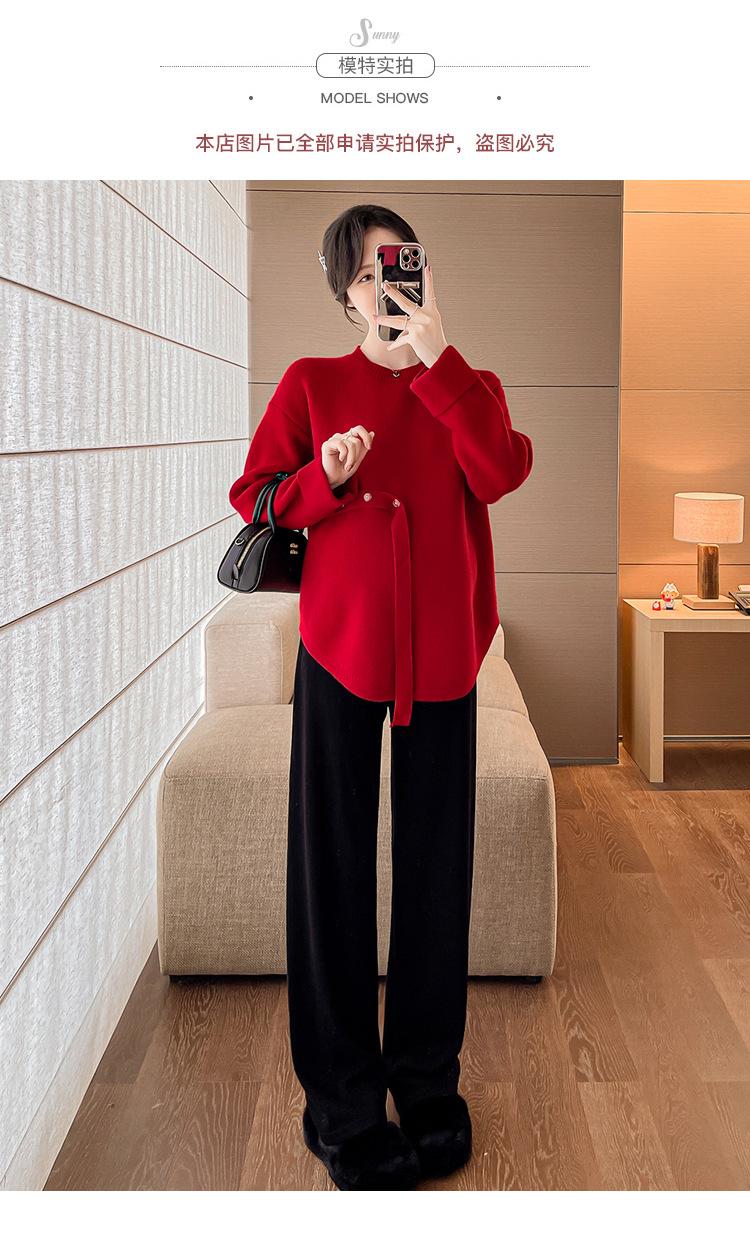 Ropa de maternidad 2024 otoño e invierno Nuevo suéter rojo de batalla de Año Nuevo Chino top de maternidad suéter