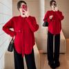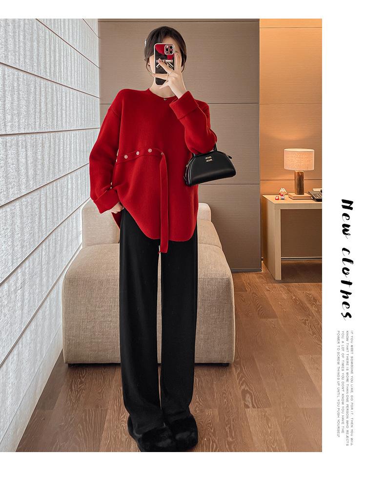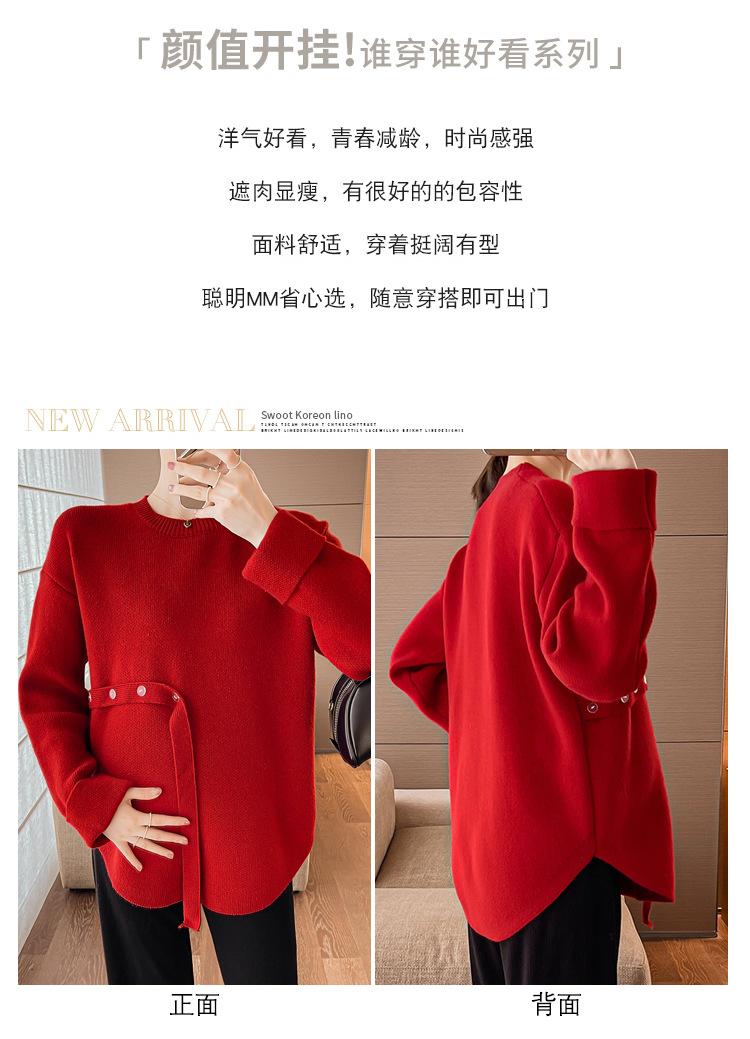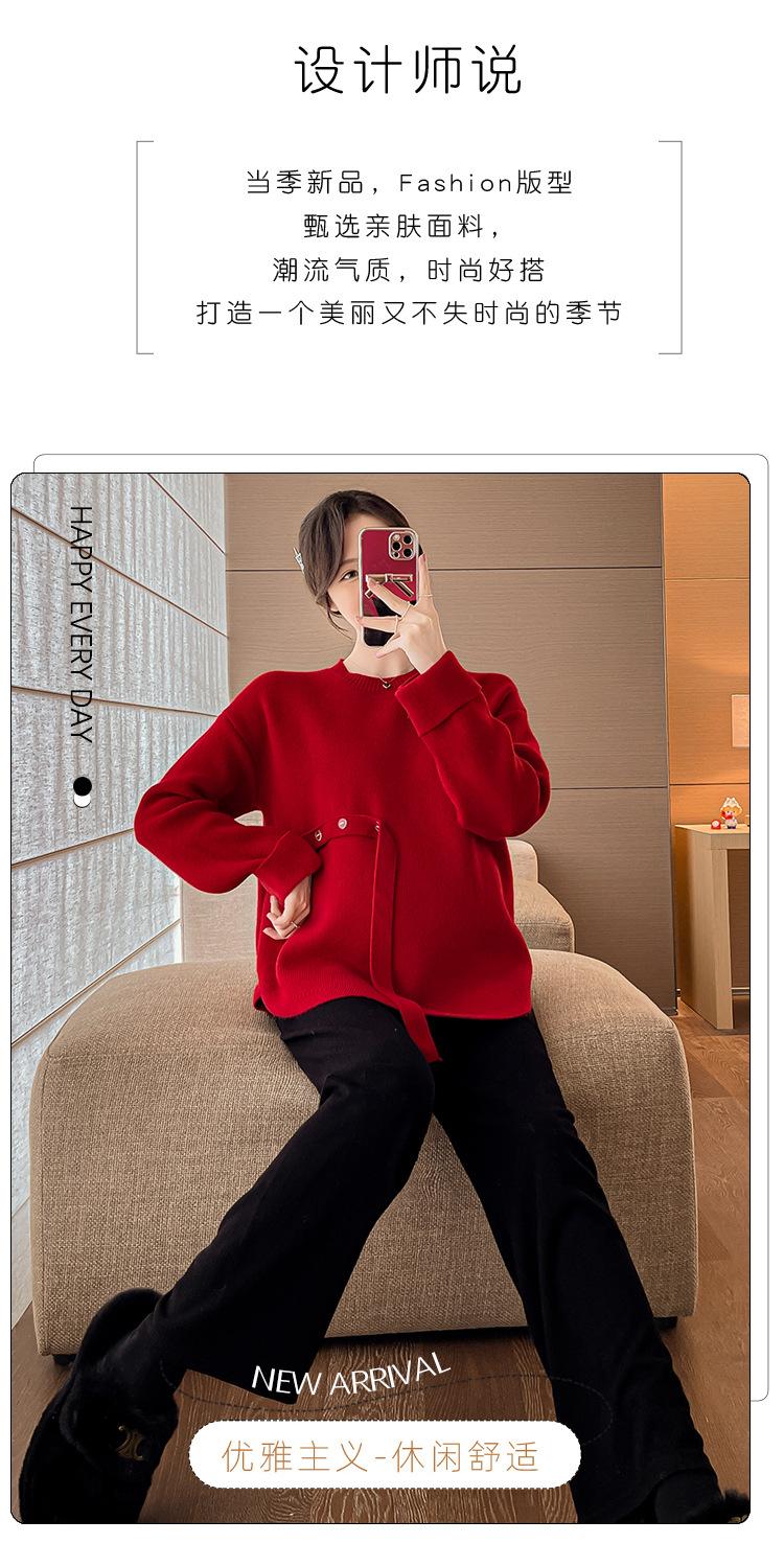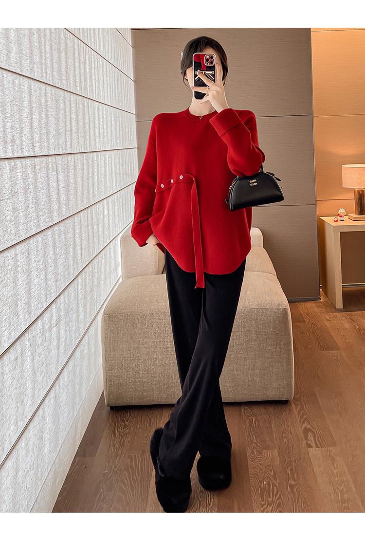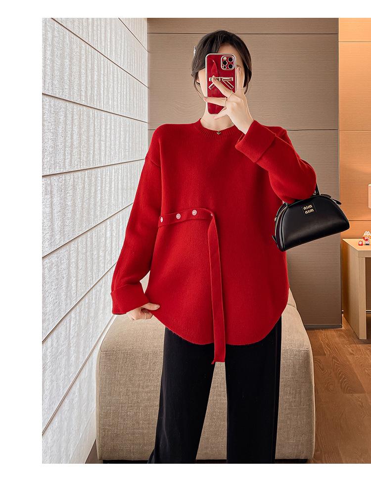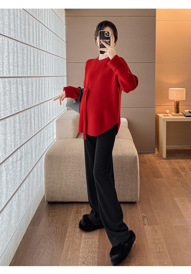 Ropa de maternidad 2024 otoño e invierno Nuevo suéter rojo de batalla de Año Nuevo Chino top de maternidad suéter