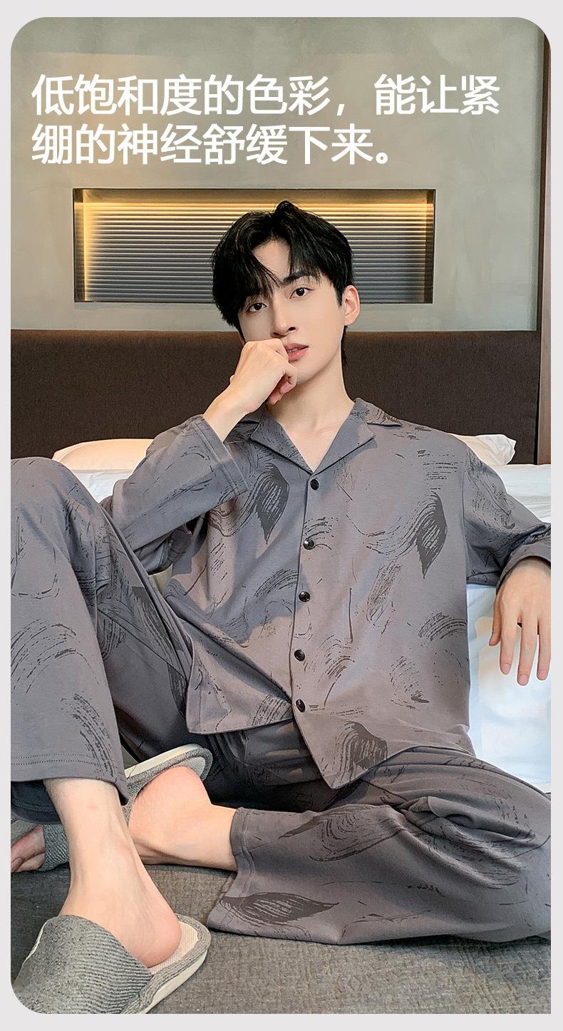 Pijamas para Hombre Primavera y Otoño 2025 Nuevo Algodón Manga Larga Hombre Otoño e Invierno Juventud Hombre Ropa de Casa traje