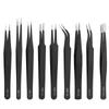 Pinzas Antiestáticas Negras de Punta Codo de Acero Inoxidable Manicura Manual Cuenta de Mano Clip Especial Traje Injerto de Pestañas