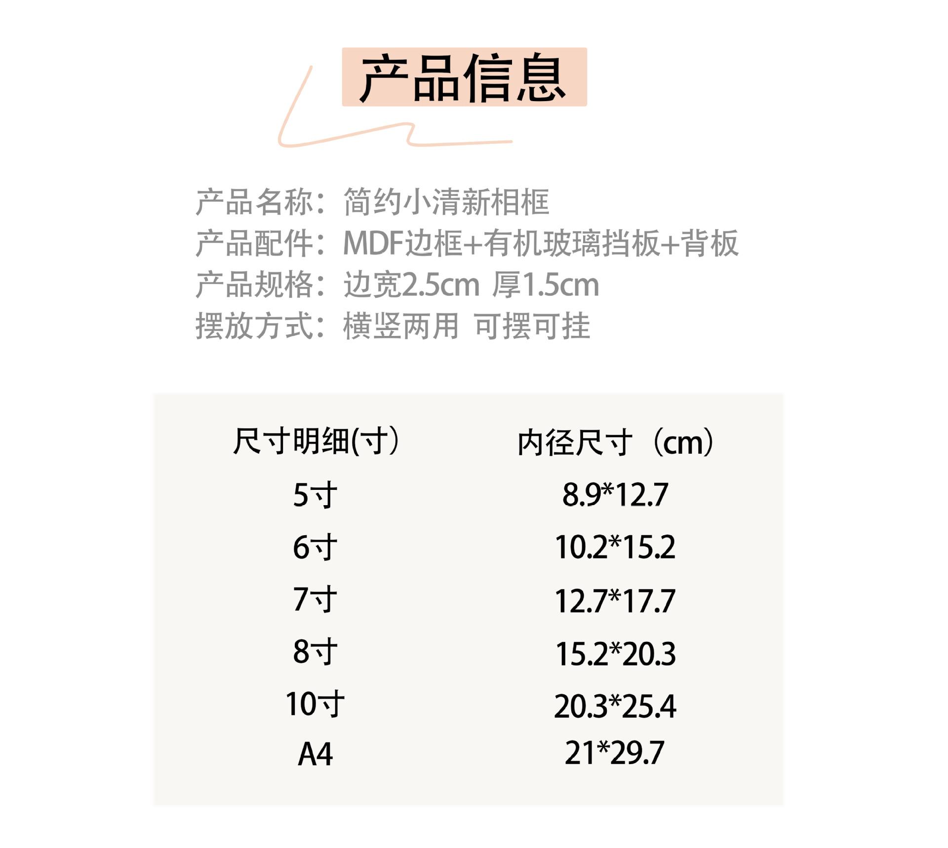 Portafotos sencillo y fresco para mesa 567810 pulgadas decoración de portafotos creativo a4 para colgar en la pared álbum de fotos de estudio fotográfico personalizado Marco