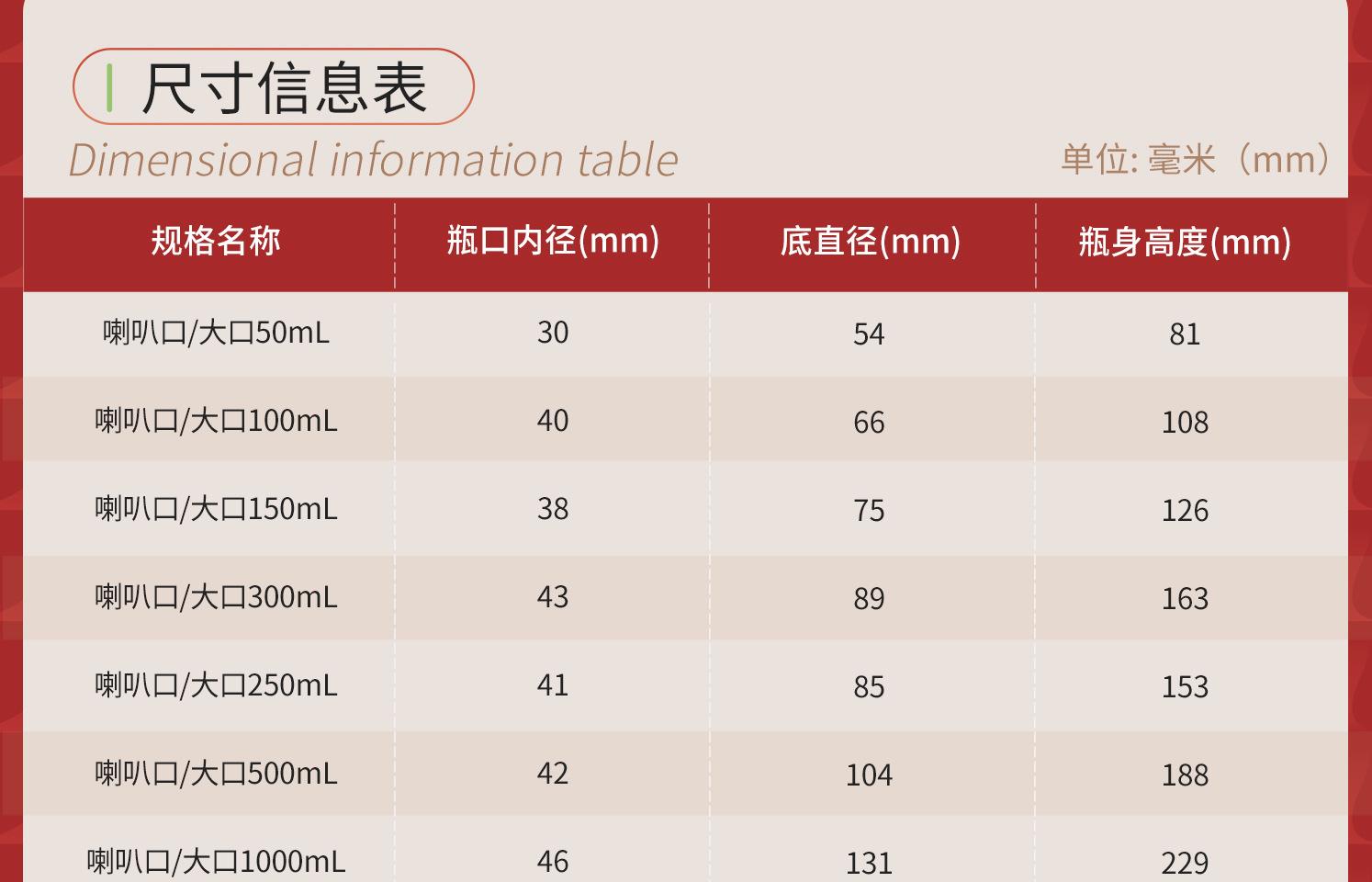 Trumpet mouth/large mouth 50ml 1 piece, Trumpet mouth/large mouth 100ml 1 piece, Trumpet mouth/large mouth 150...