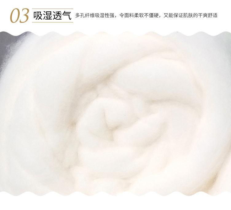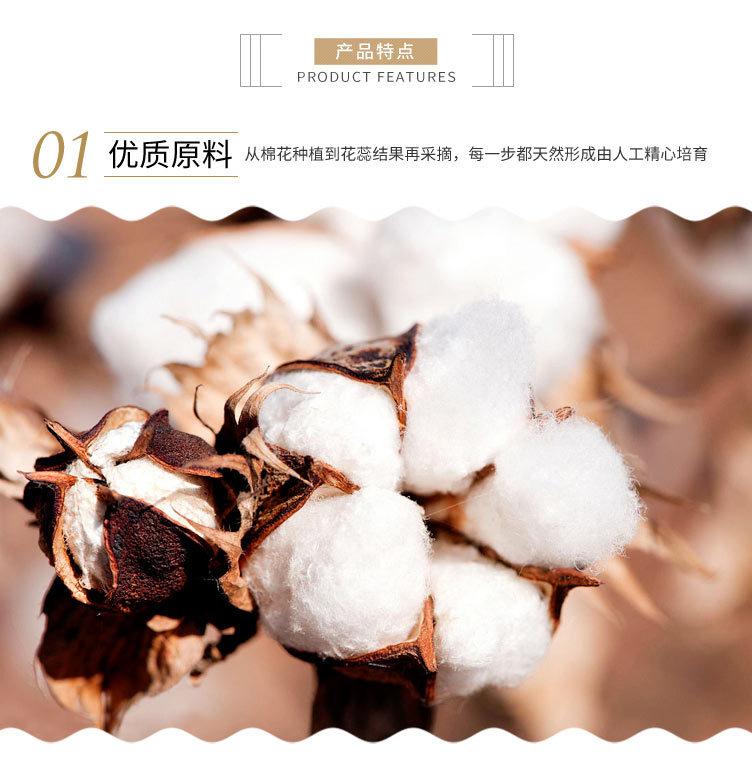 2. El algodón es naturalmente suave y no irrita la piel al contacto. No tiene olor, no contamina, no se blanquea, no tiene aditivos y tiene un aroma fresco y natural. Es un producto verde cálido, saludable y respetuoso con el medio ambiente. Especialmente adecuado para personas mayores y niños.