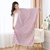 Toalla de Baño Grande a Rayas Coral Fleece Fabricante Venta al por Mayor Adulto Engrosada Salón de Belleza Absorbente Uso en Casa Toalla de Baño Extra Grande Envoltorio Portátil