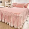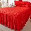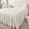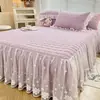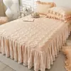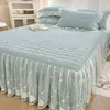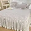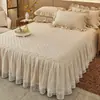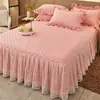 6Jna Falda de Cama Estilo Princesa de Encaje de Una Pieza Acolchada Engrosada Sábana con Falda Cubrecama para Cubrir Todas las Estaciones