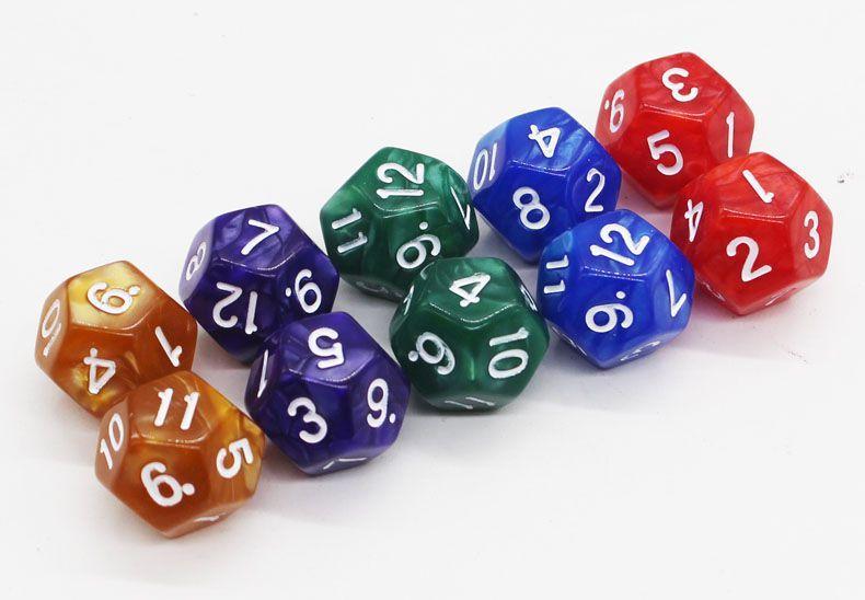 Venta al por mayor dados de color de 12 caras todo tipo de dados de 12 caras dados de criba de color incluyendo color sólido de grano perlado color transparente