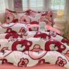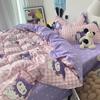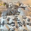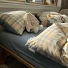 Juego de sábanas de algodón lavado fresco de cuatro piezas, ropa de cama para dormitorio de estudiantes, juego individual de tres piezas, funda nórdica, juego de dos piezas