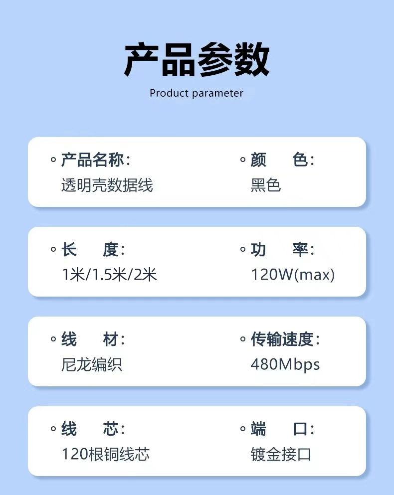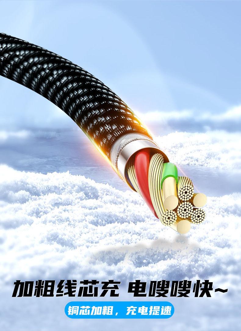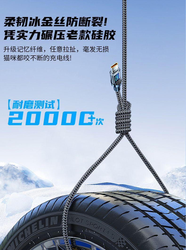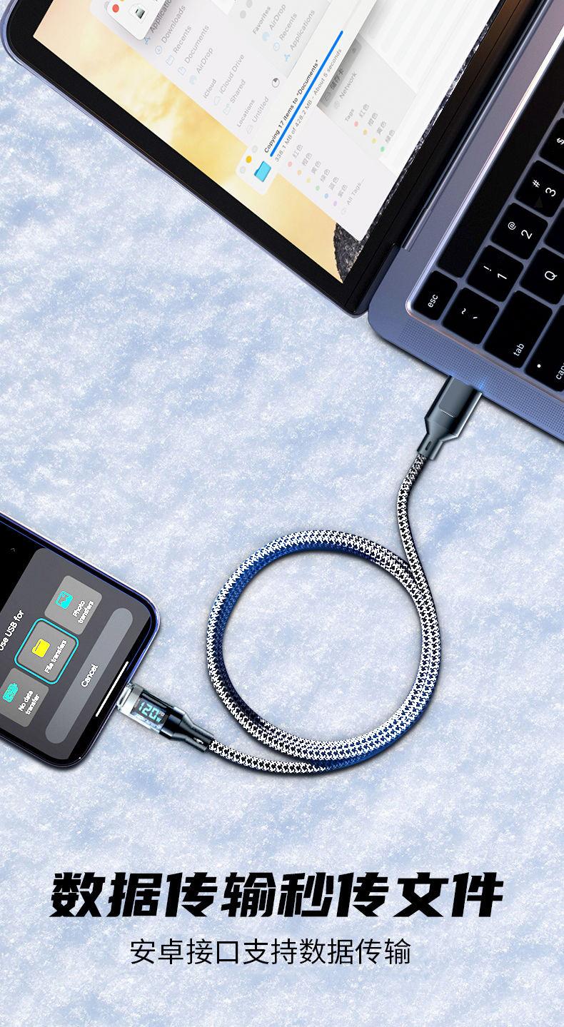 Pantalla digital transfronteriza carga súper rápida de 120 W doble Typec para Apple 15/16 Huawei Glory 6A línea de carga para teléfono móvil