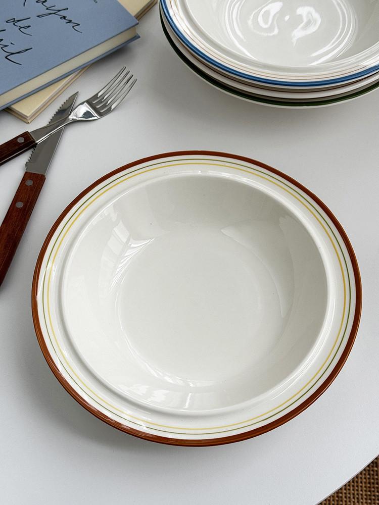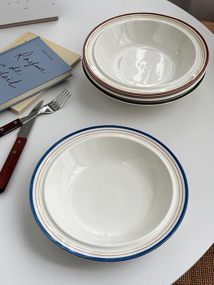 Recoger Fugas En Pintura al Óleo Plato Cerámico para Sopa Cuenco Cerámico Simple Lujo Accesible Retro Hogar de Alto Valor Escandinavo