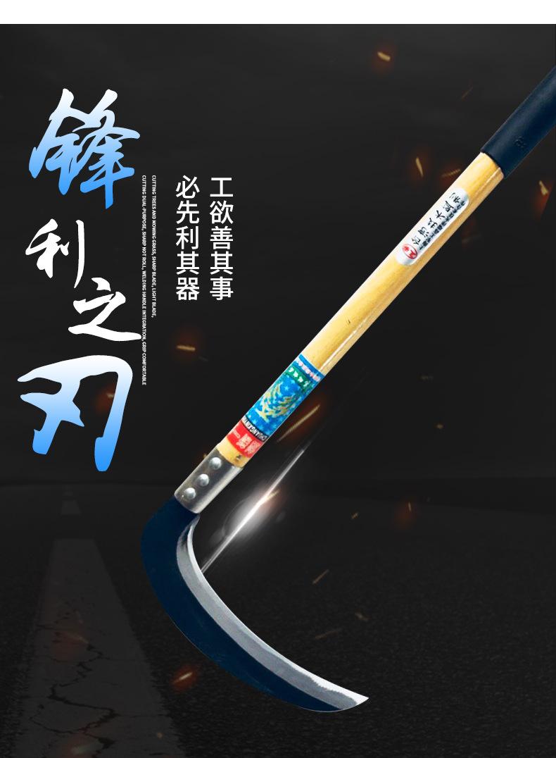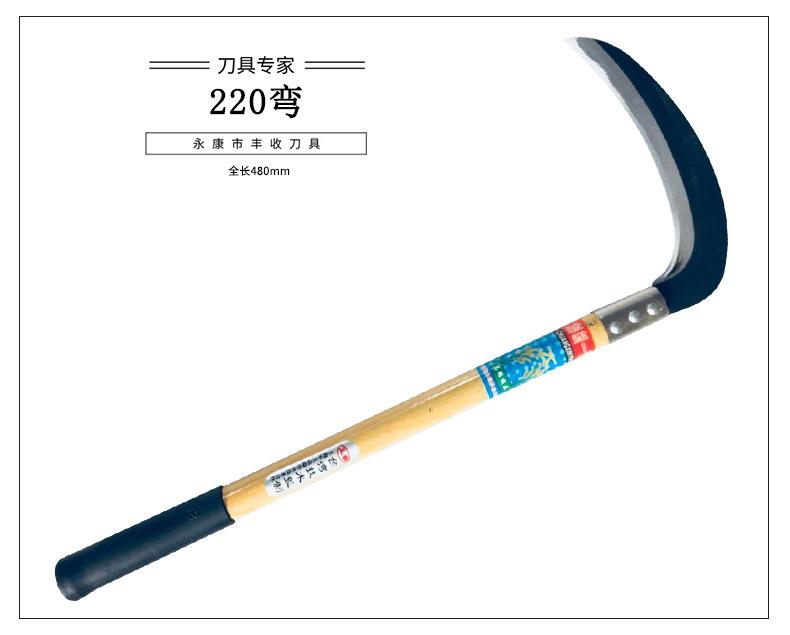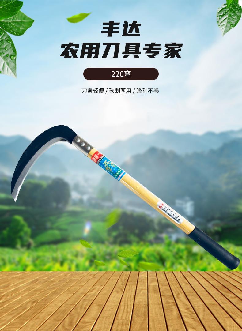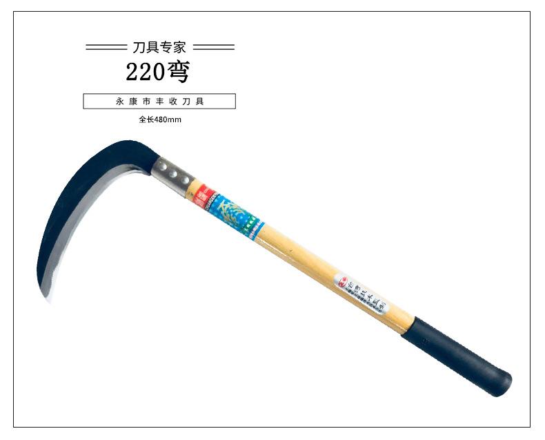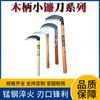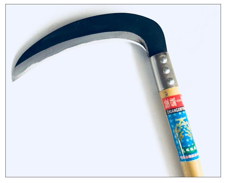 Cuchillo Agrícola de Acero al Manganeso, Hoz de Codo con Grano de Madera, Hoz Multifuncional para Cosechar Maíz Trigo, Hoz con Mango Largo de Hierro