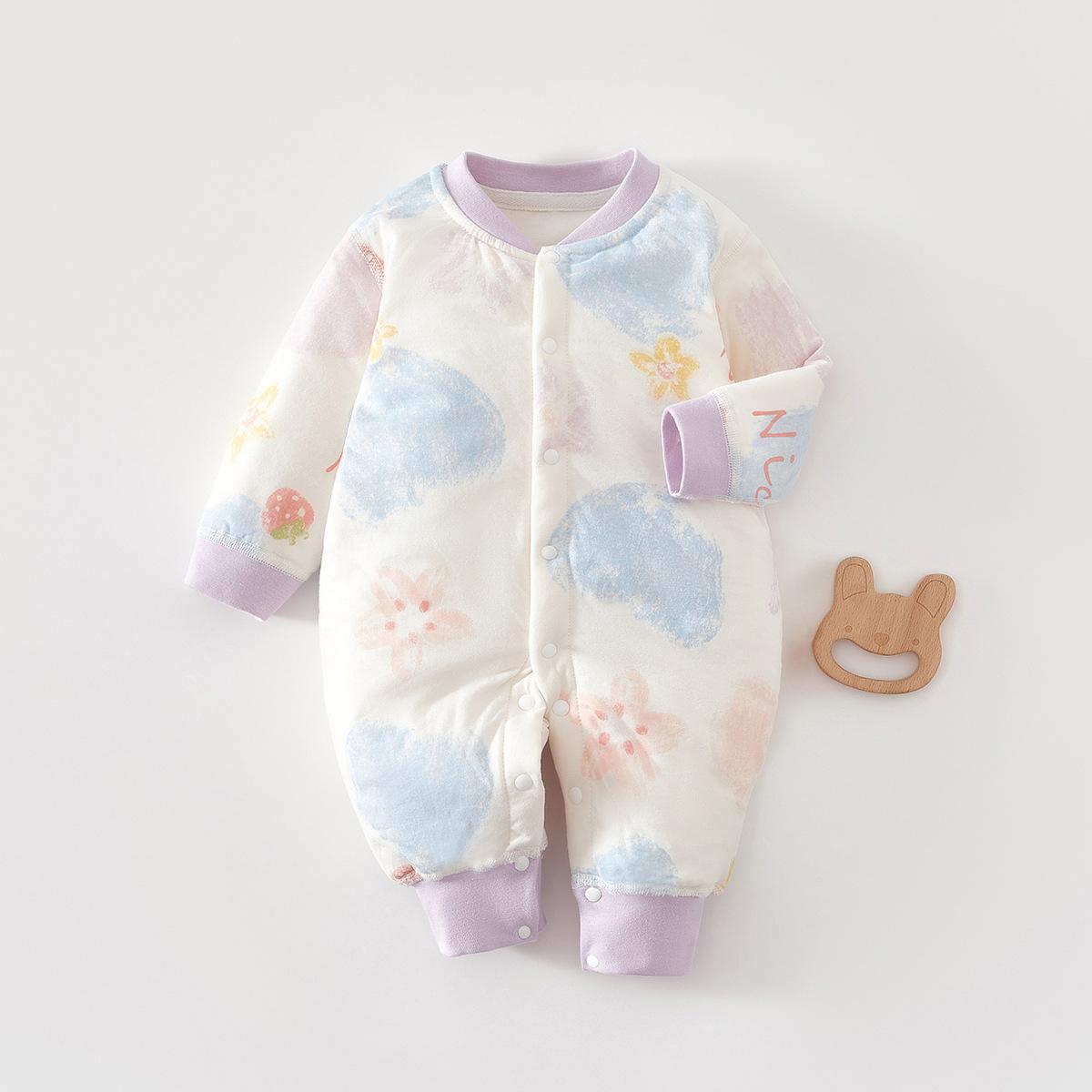 Ropa de Bebé Otoño e Invierno Nuevo Estilo Mameluco Algodón Cálido Estilo Princesa Ropa de Otoño para Bebé Pijama de Algodón Fino para Mujer Otoño