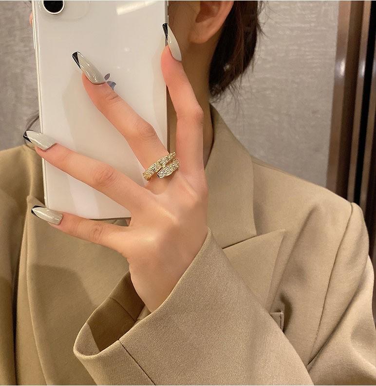 Anillo geométrico de aleación europeo y americano nuevo transfronterizo con diamantes completos, abertura ajustable, joyería femenina, ventas de fábrica