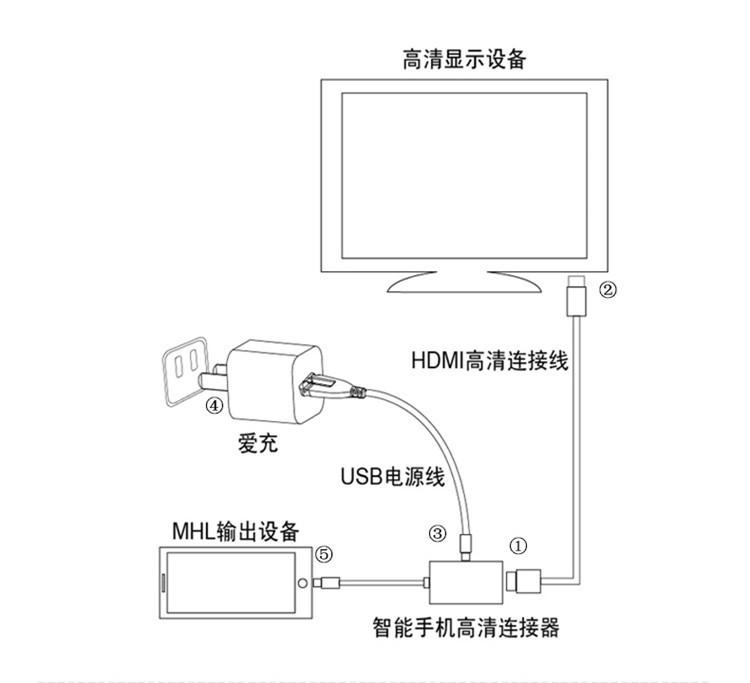 Aplicable a teléfonos móviles con MICRO USB (como Samsung, HTC, Xiaomi, Meizu MX, etc.) para convertir la salida de alta definición HDMI a televisores de alta definición con interfaz HDMI, proyectores HD, etc.