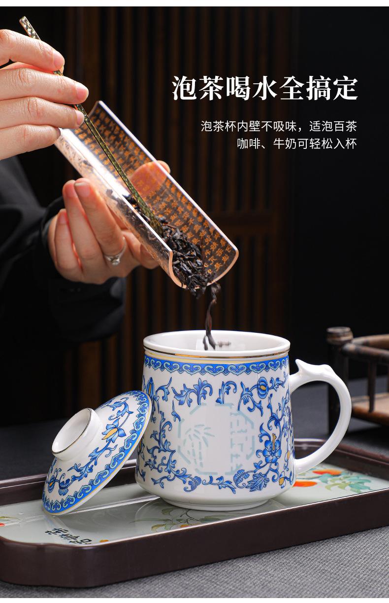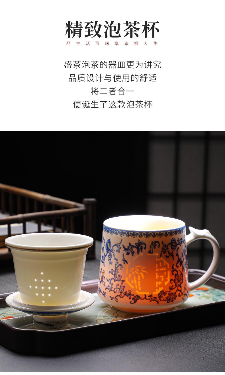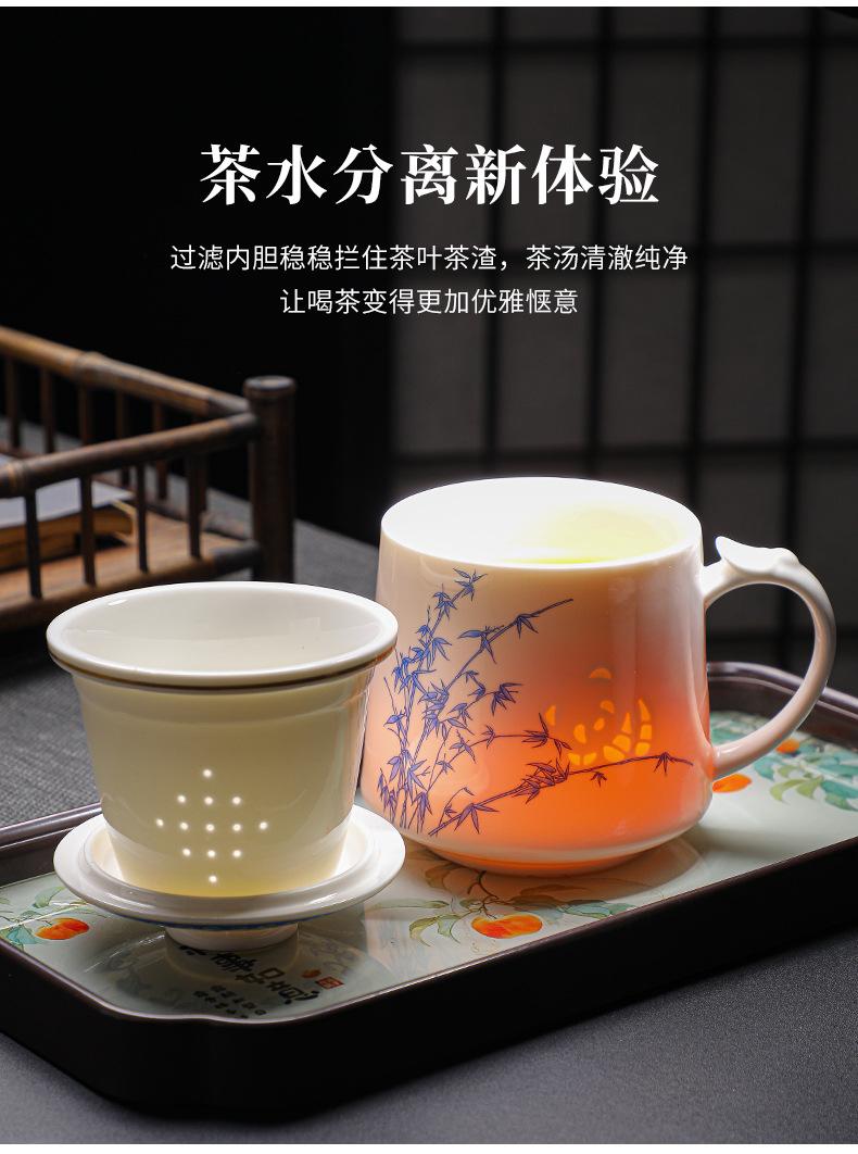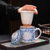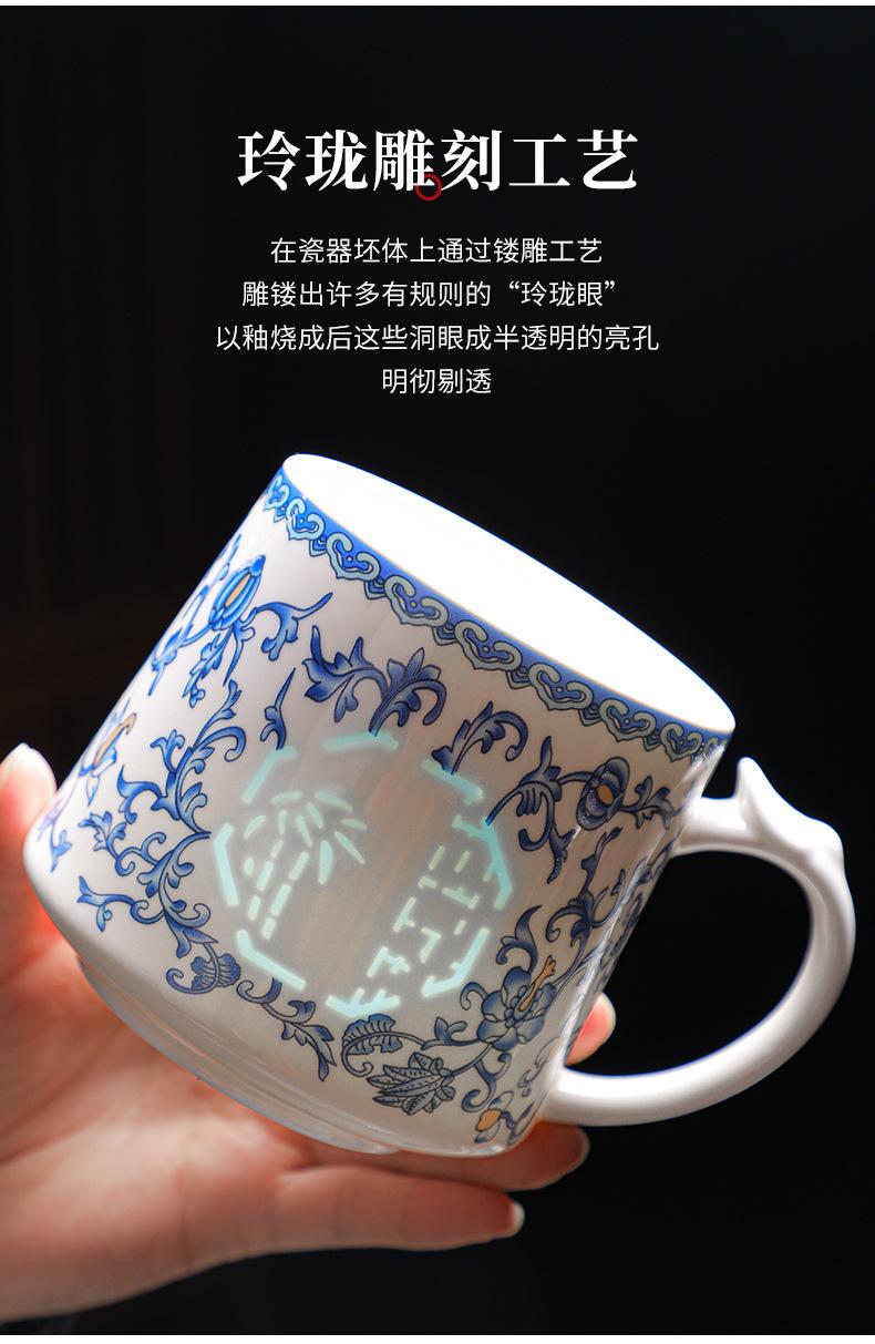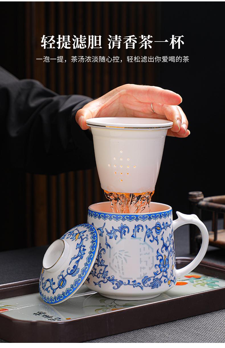 Taza Exquisita de Oficina Azul y Blanca Taza con Recorte Taza para Separación de Té y Agua Taza de Té de Cerámica de Gran Capacidad Regalo para la Reunión Anual