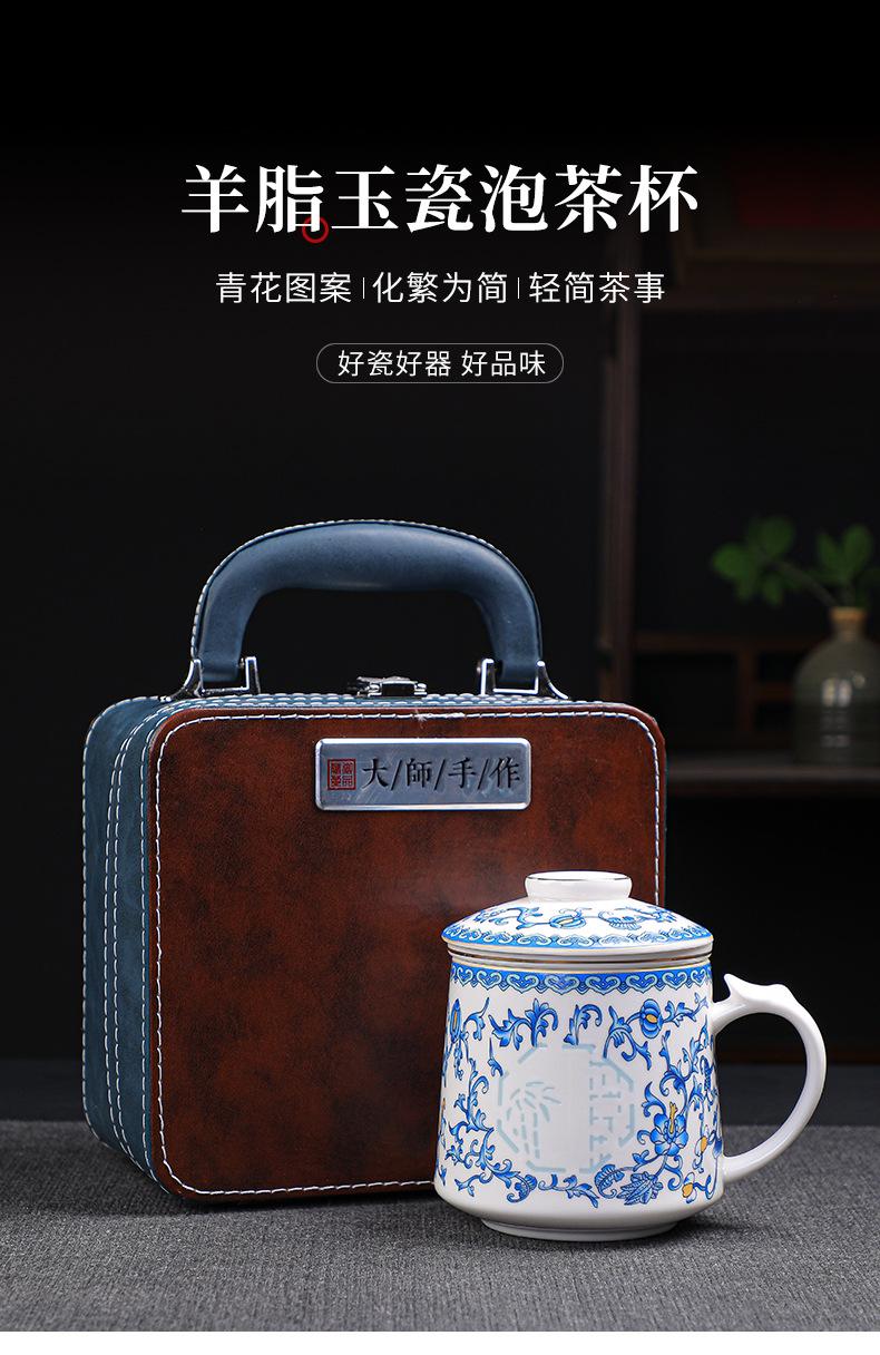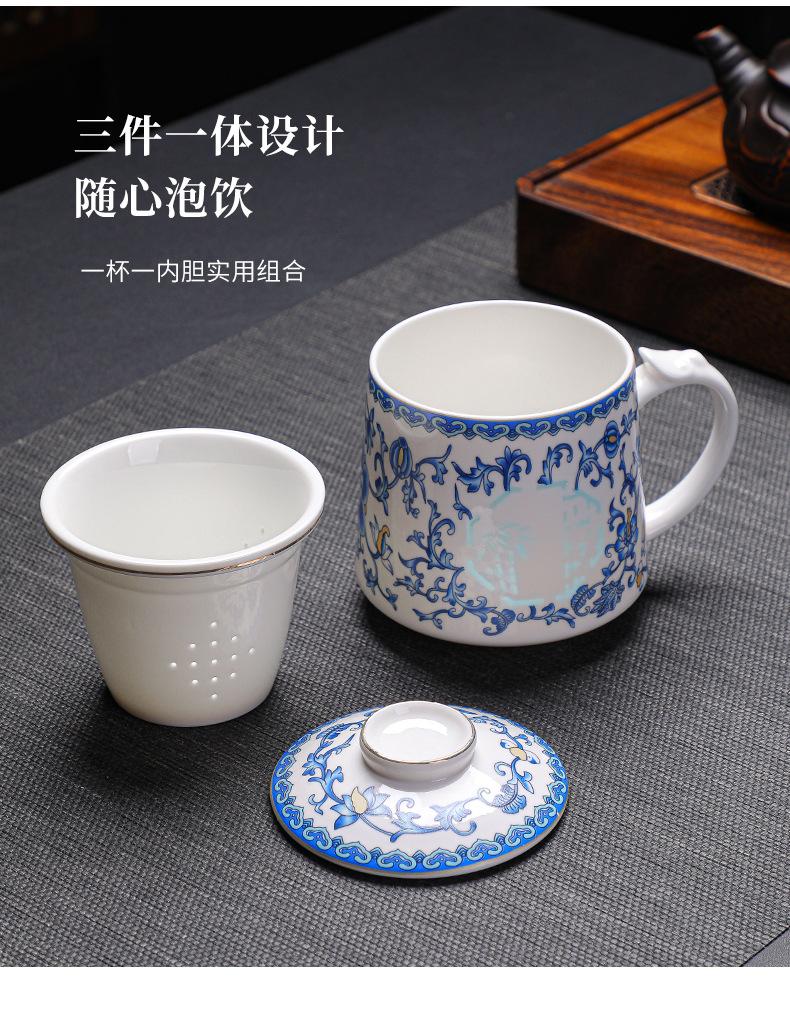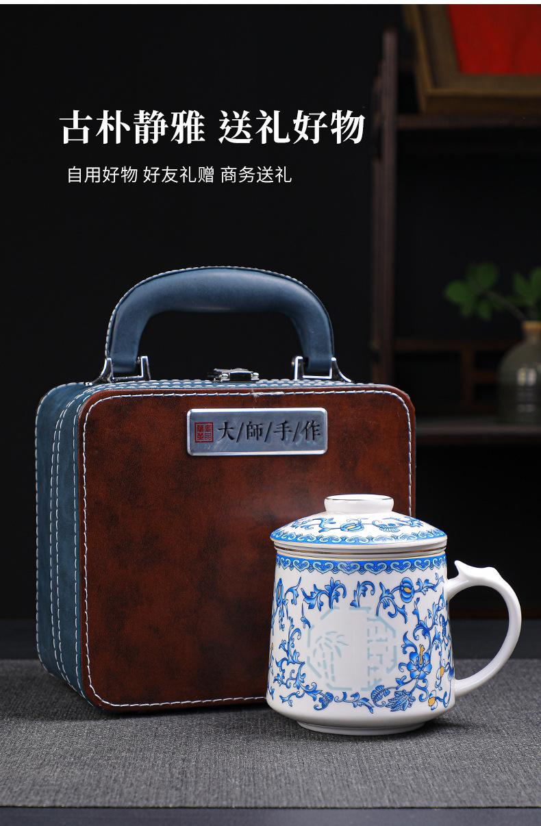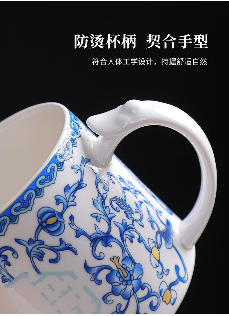 Taza Exquisita de Oficina Azul y Blanca Taza con Recorte Taza para Separación de Té y Agua Taza de Té de Cerámica de Gran Capacidad Regalo para la Reunión Anual