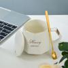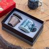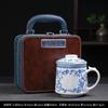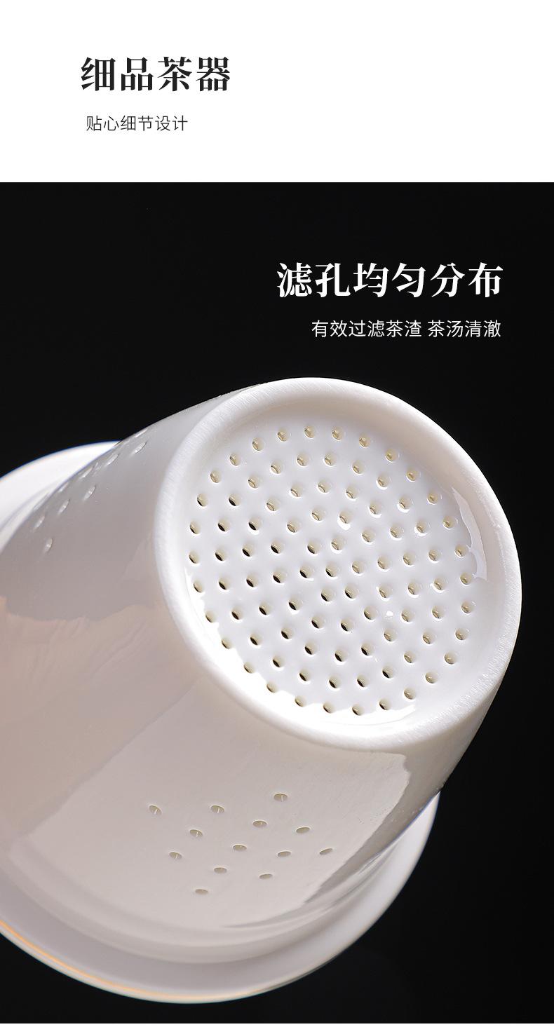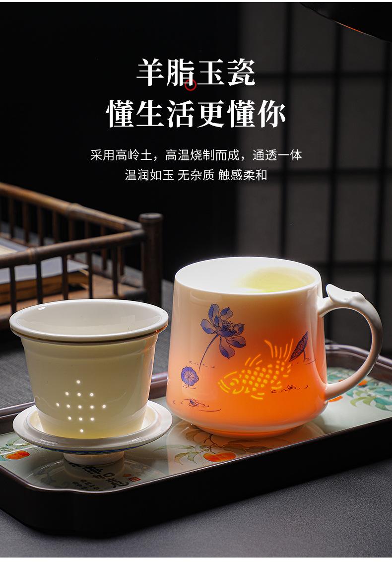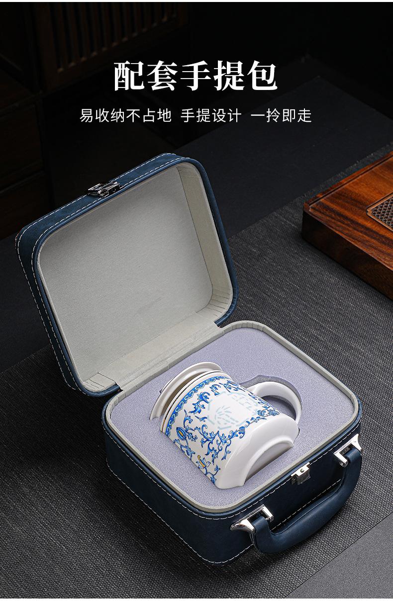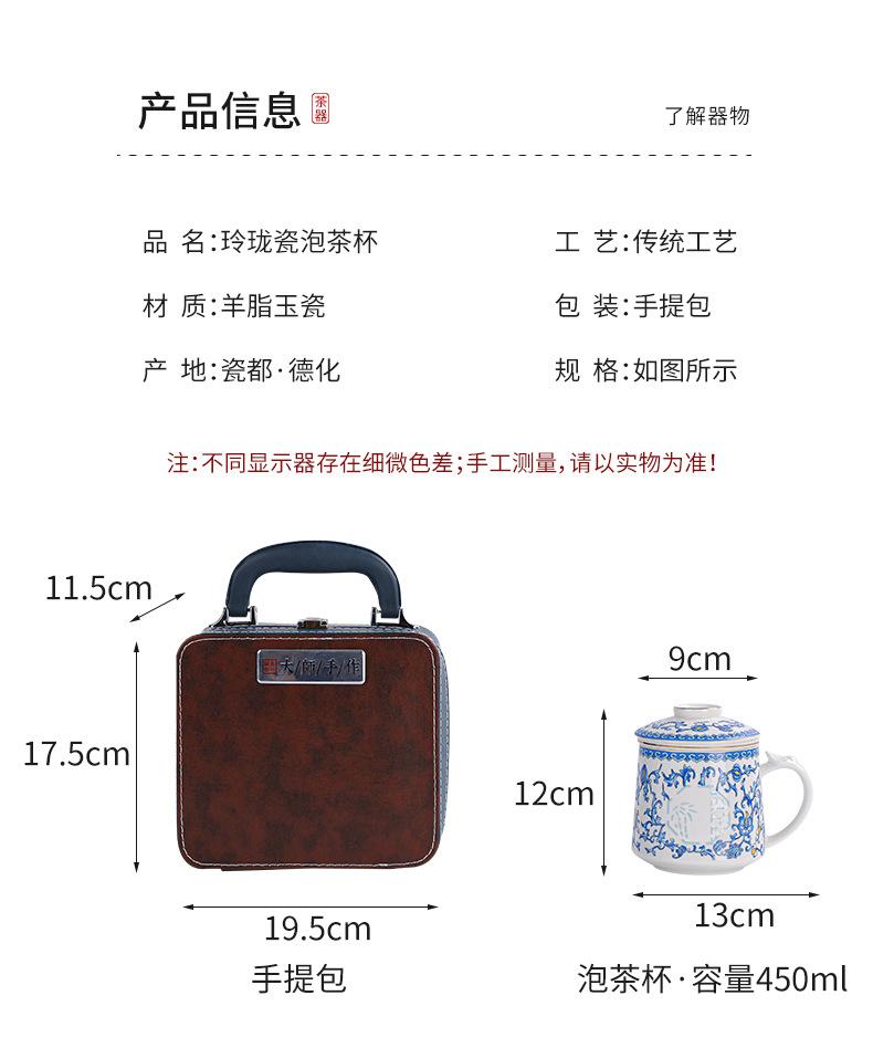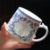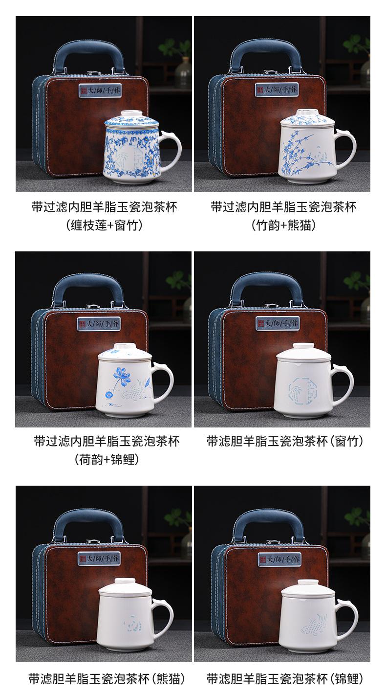 Taza Exquisita de Oficina Azul y Blanca Taza con Recorte Taza para Separación de Té y Agua Taza de Té de Cerámica de Gran Capacidad Regalo para la Reunión Anual