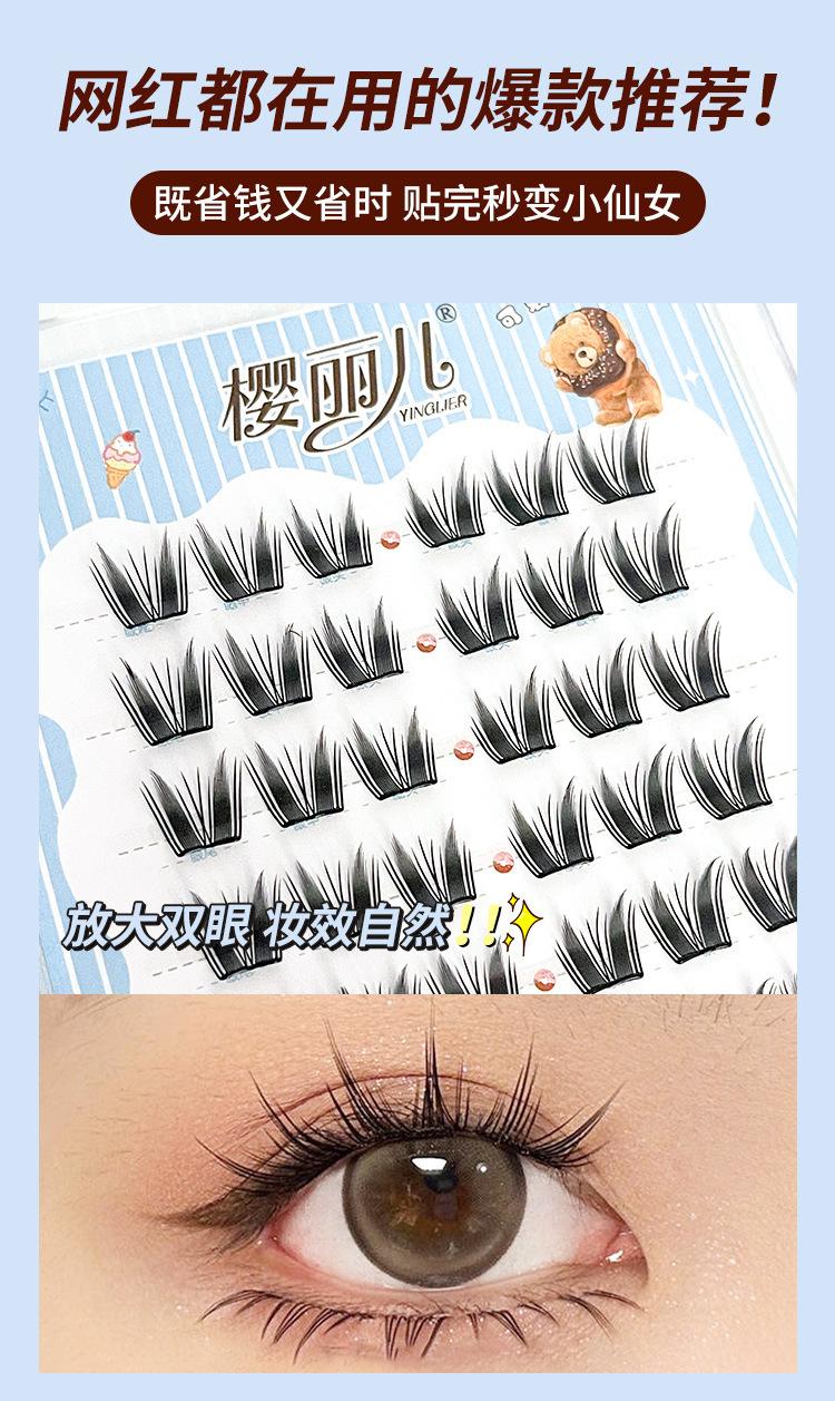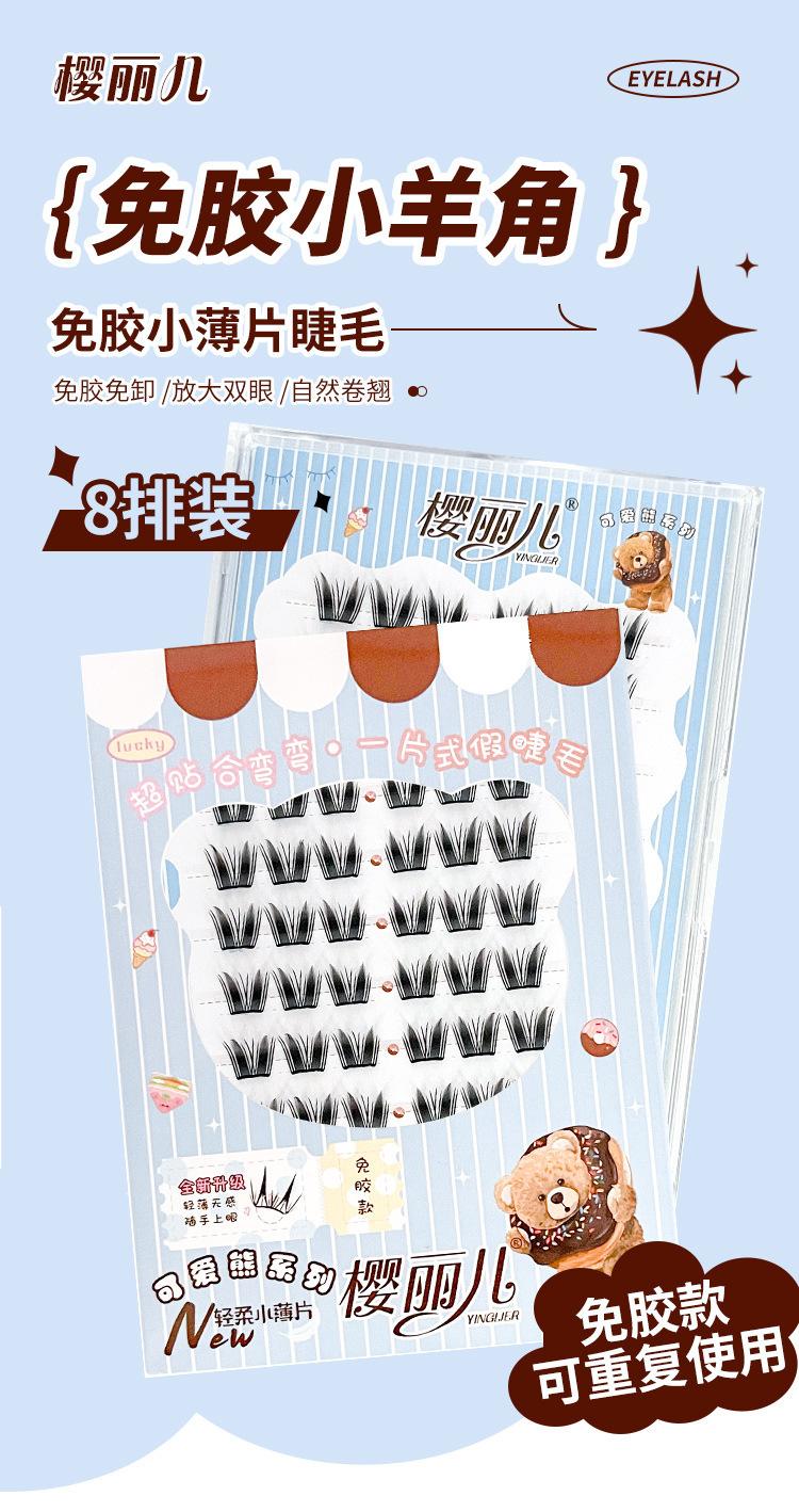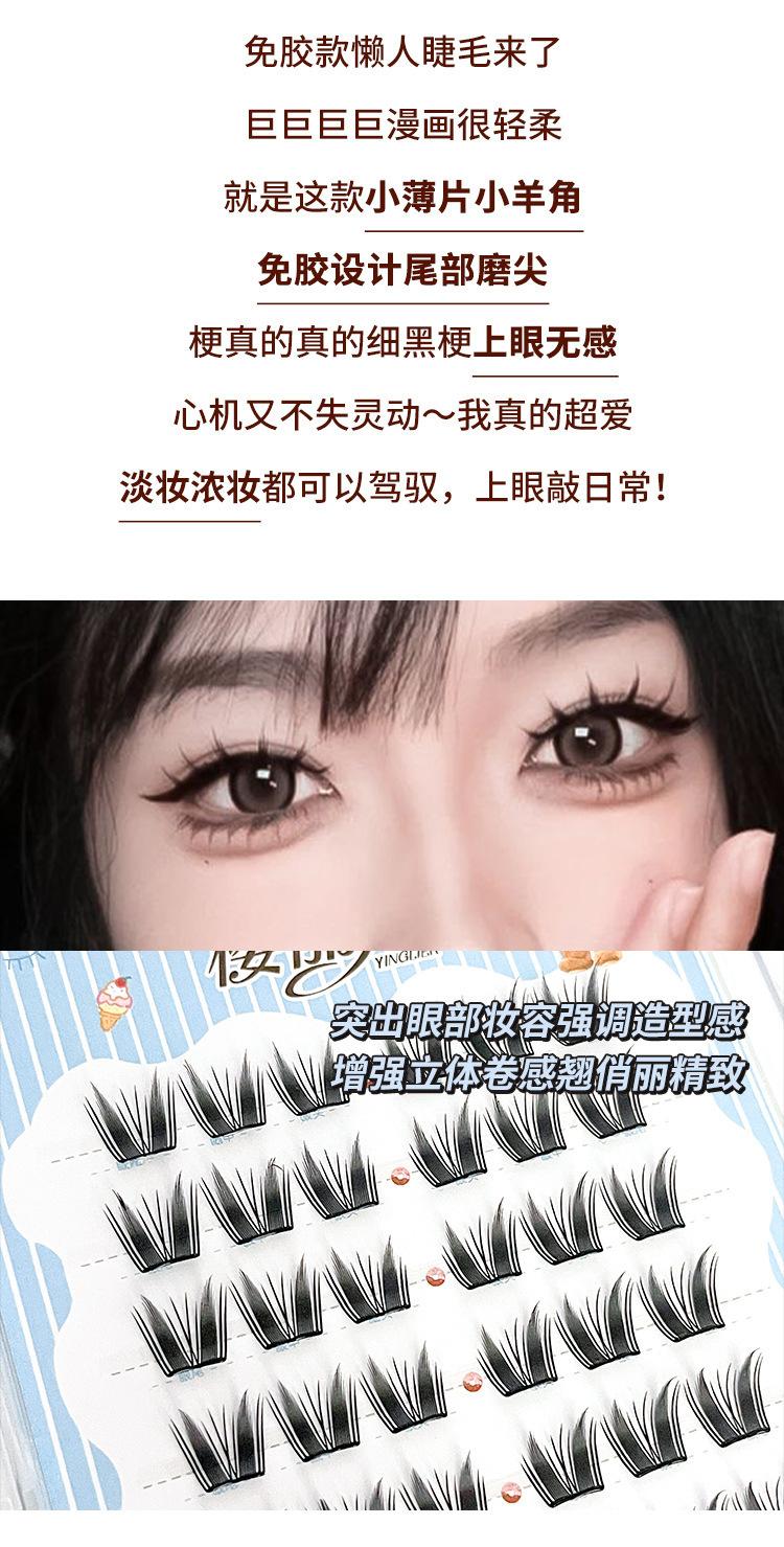 Pestañas Postizas de Cuerno Pequeño en Piezas Pequeñas Finas Sin Pegamento Ying Lier, Ligeras y Naturales Segmentadas en Racimos Individuales Pestañas Autoadhesivas para Perezosas