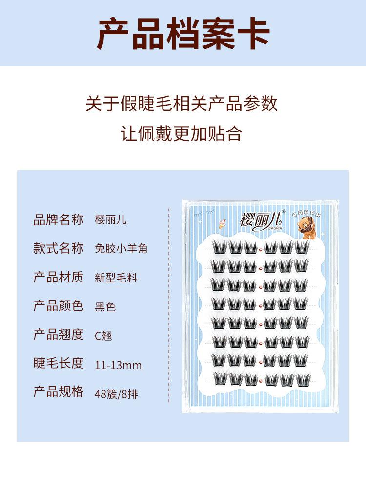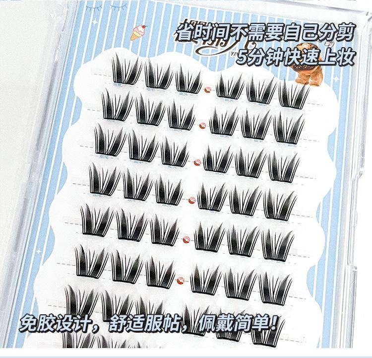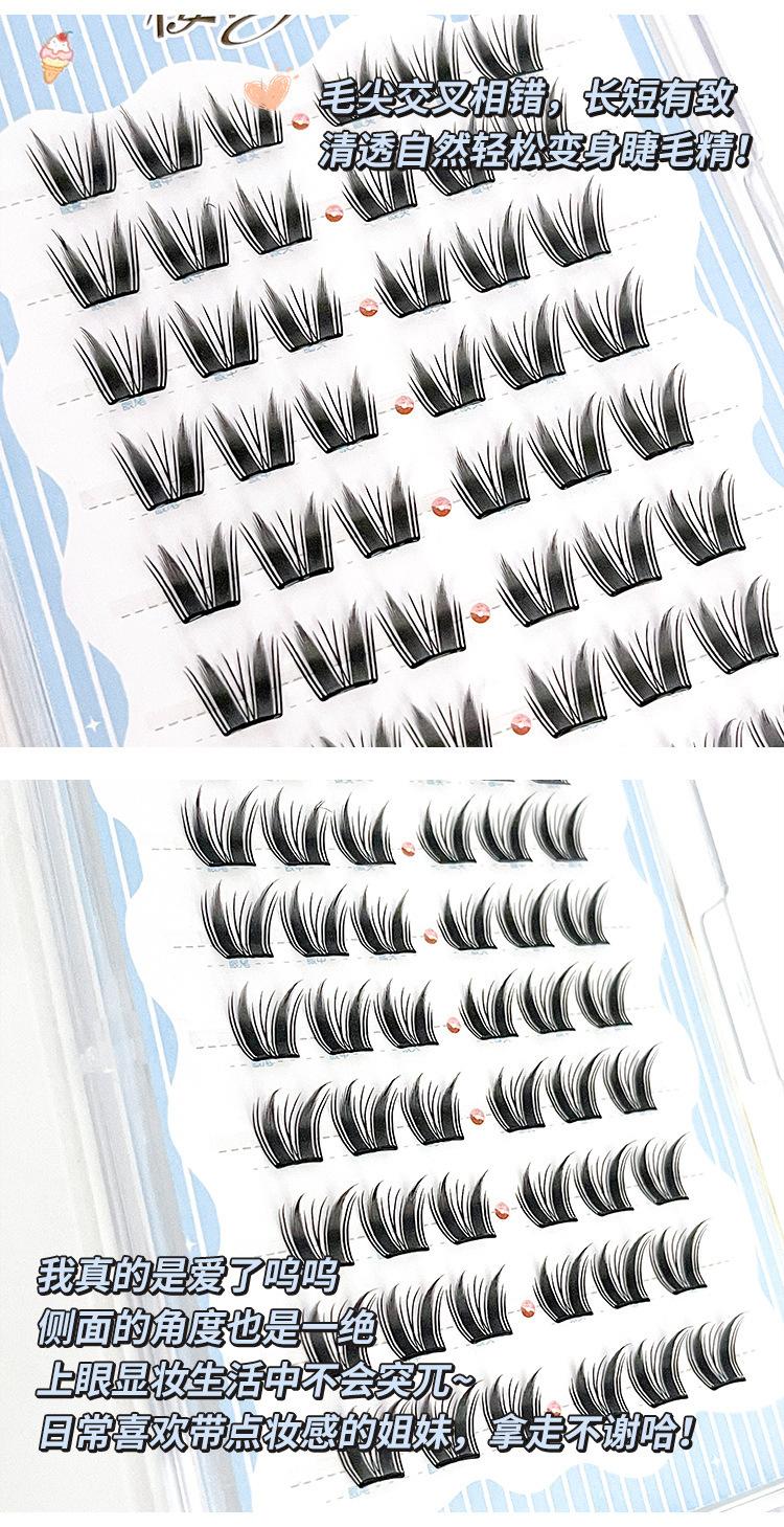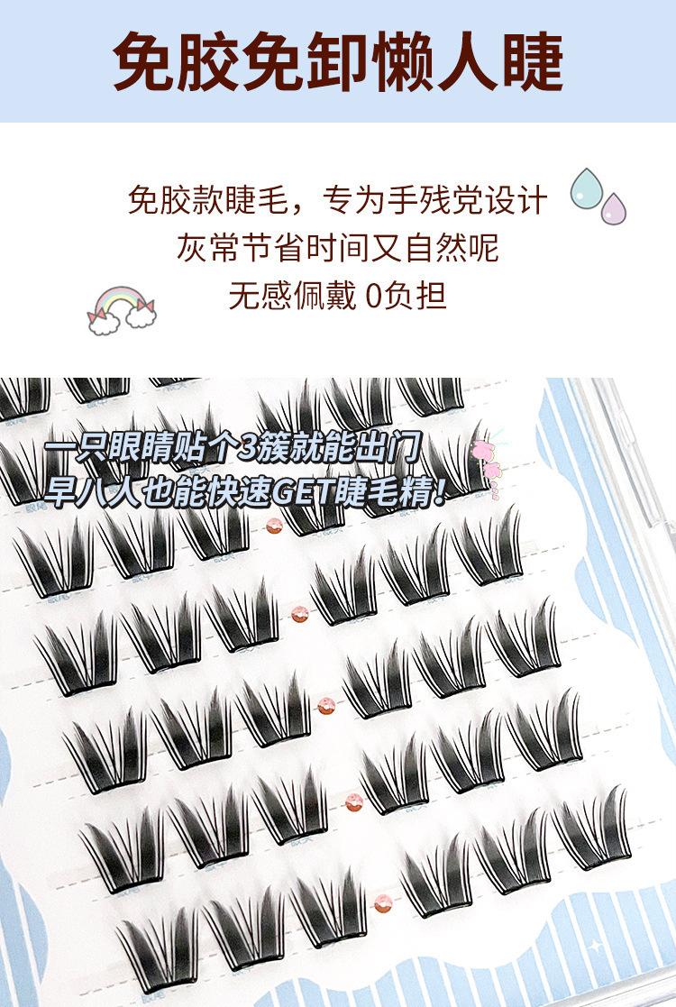 Pestañas Postizas de Cuerno Pequeño en Piezas Pequeñas Finas Sin Pegamento Ying Lier, Ligeras y Naturales Segmentadas en Racimos Individuales Pestañas Autoadhesivas para Perezosas