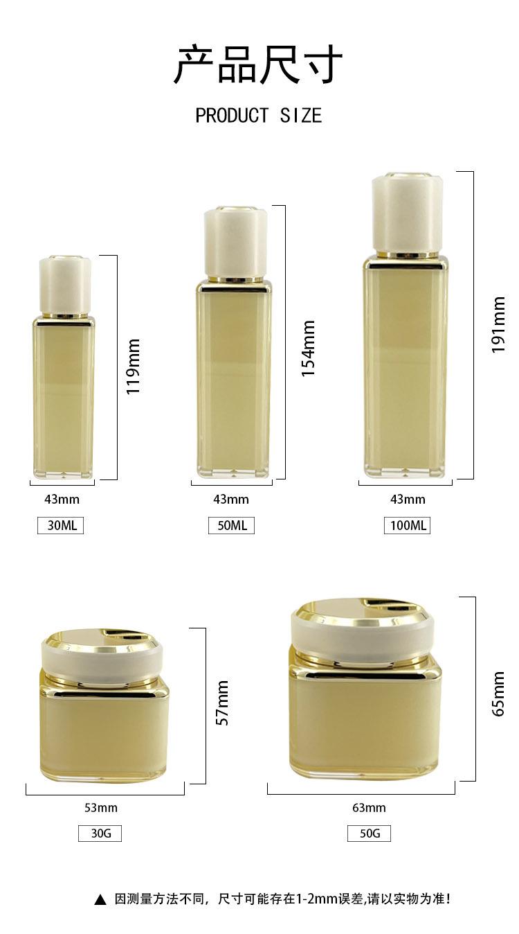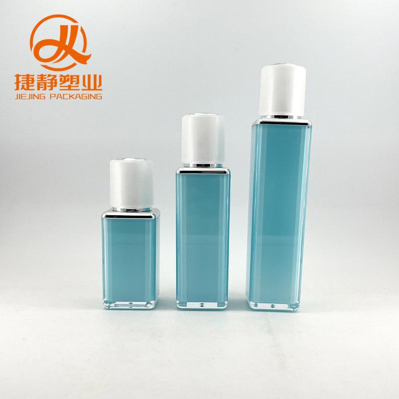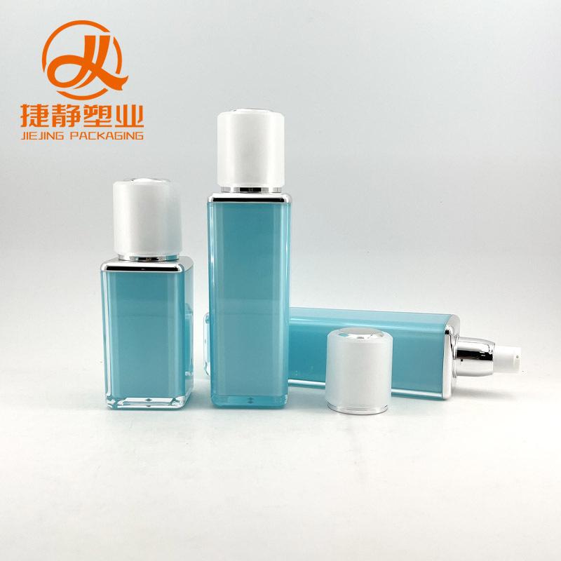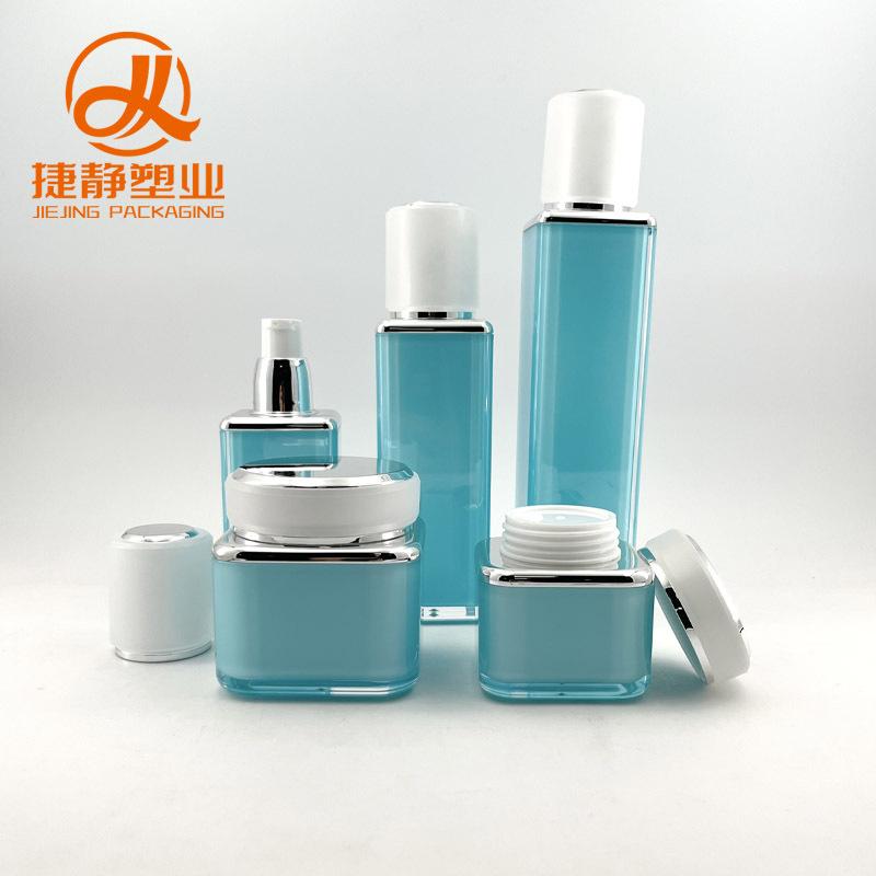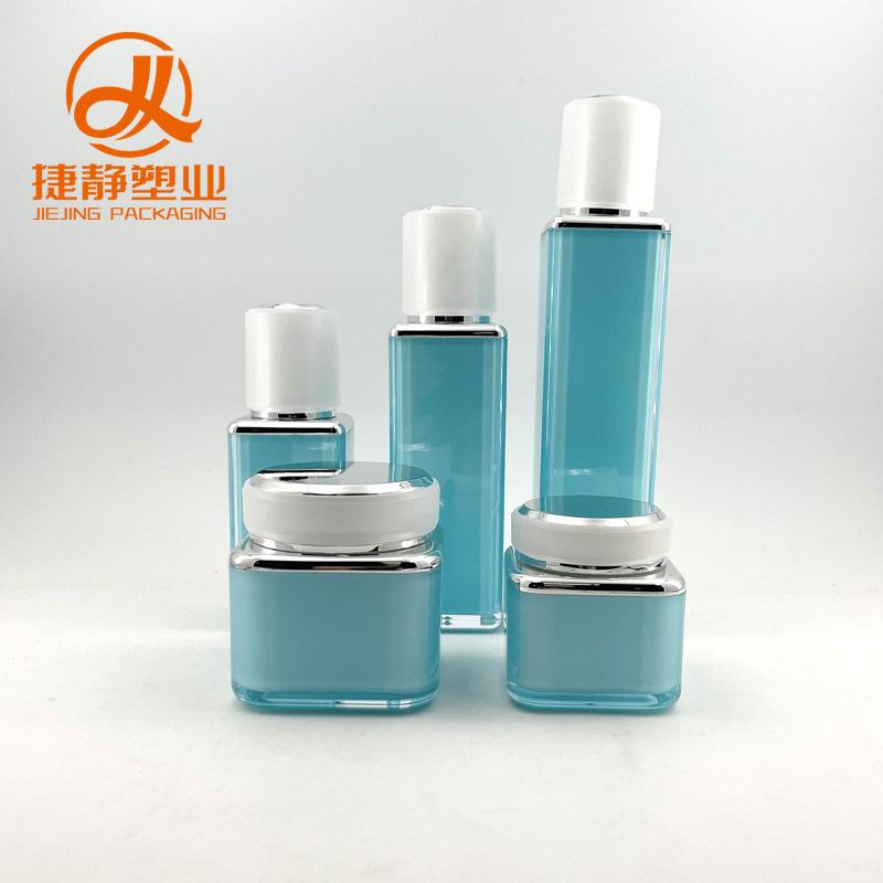 Plástico Acrílico Cubierta Azul Velo Set de Botellas Cuadradas Botella de Crema Botella de Loción Botella de Esencia Botella Cosmética Material de Embalaje