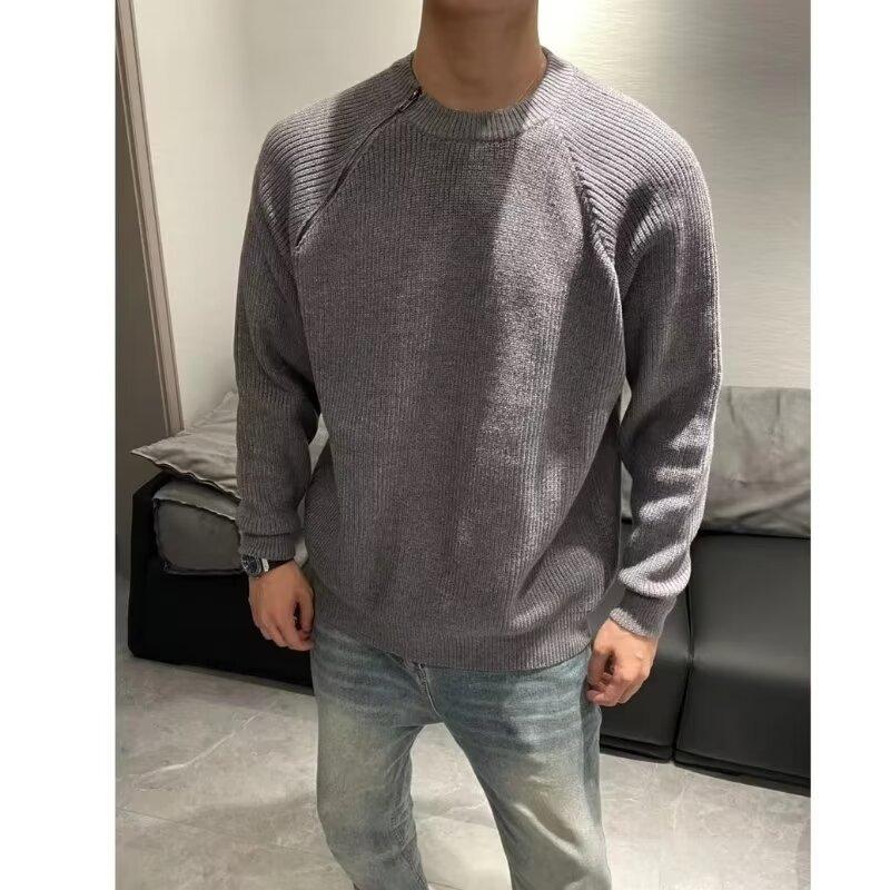 Suéter holgado de cuello redondo con cremallera para hombre, suéter informal versátil de punto, estilo pareja, nueva moda de invierno