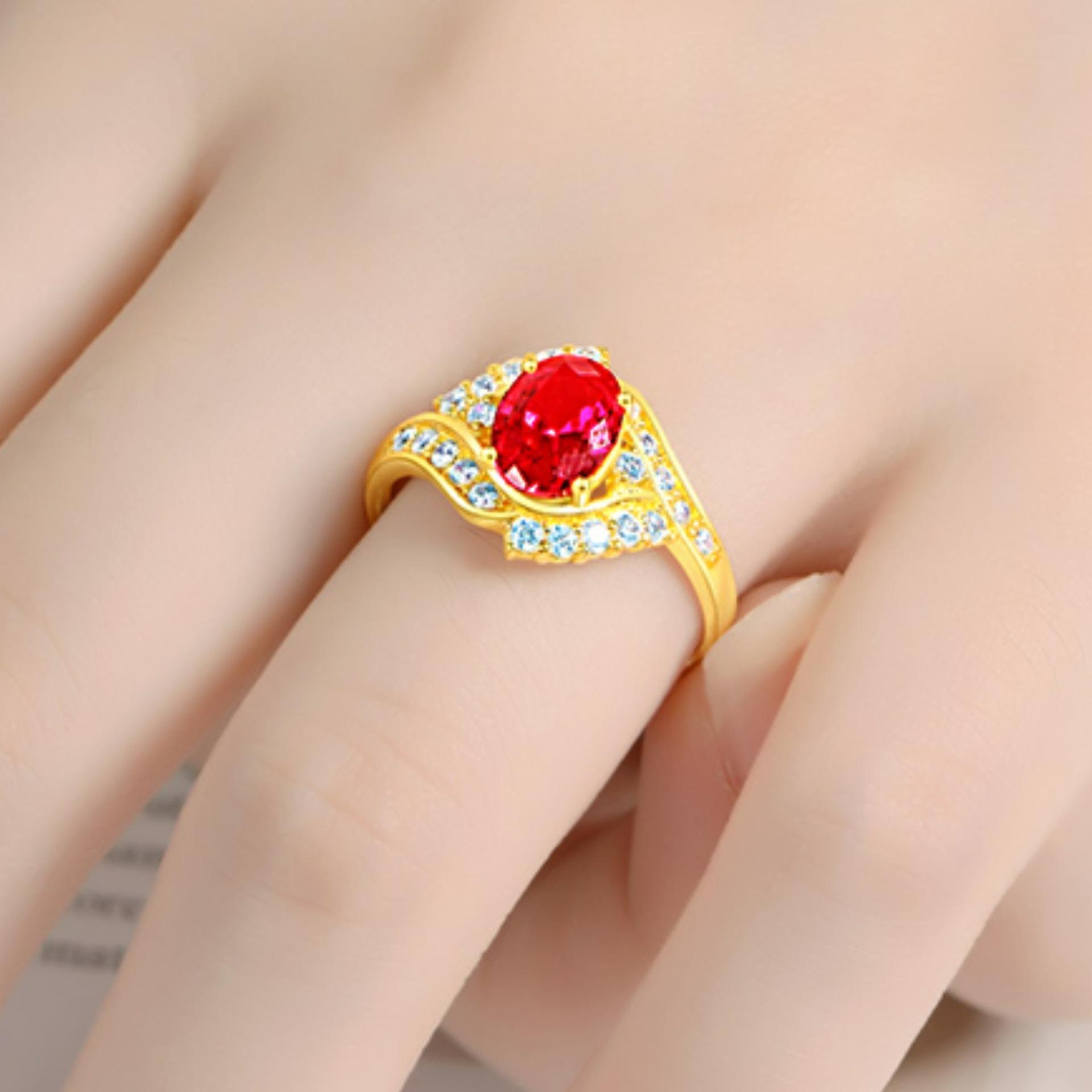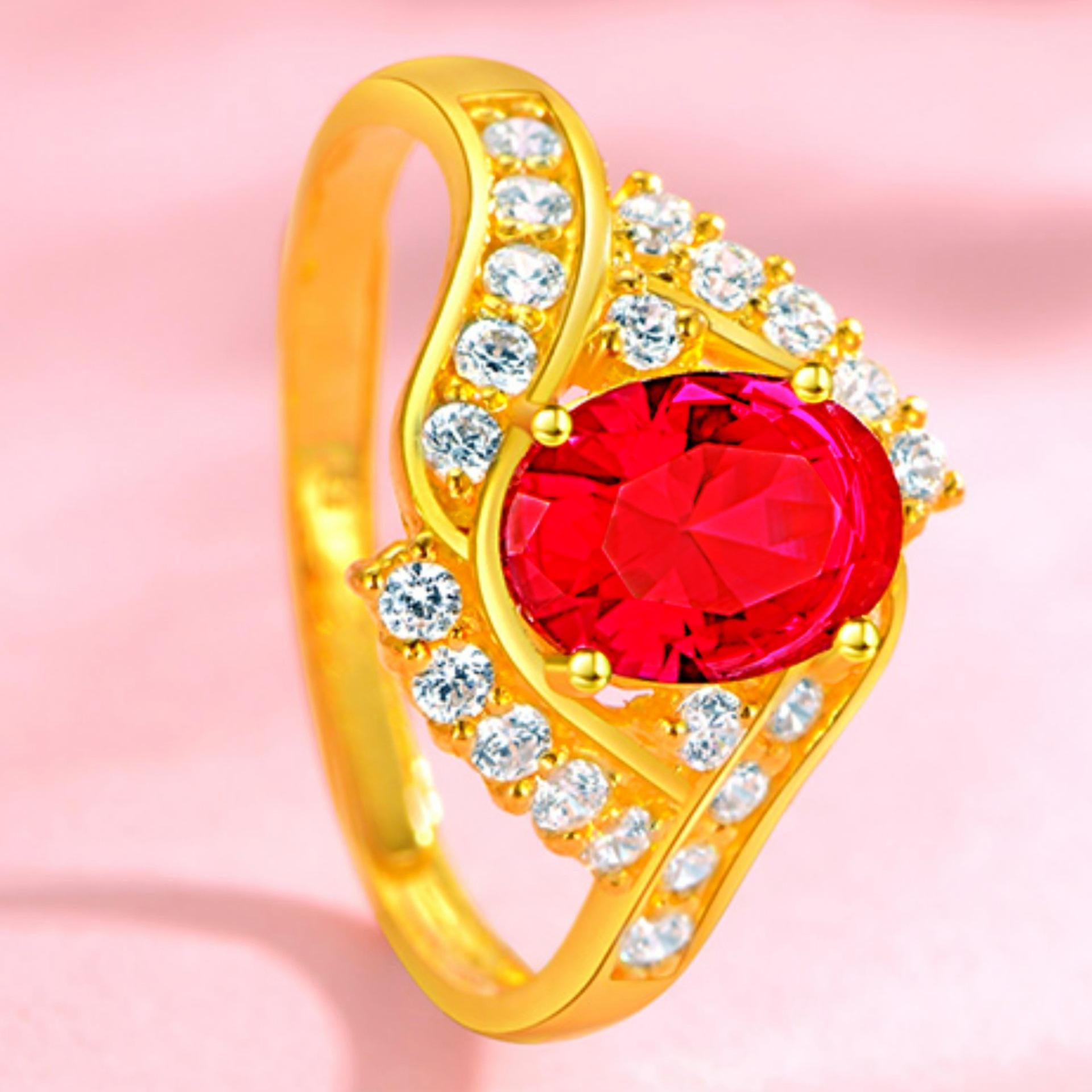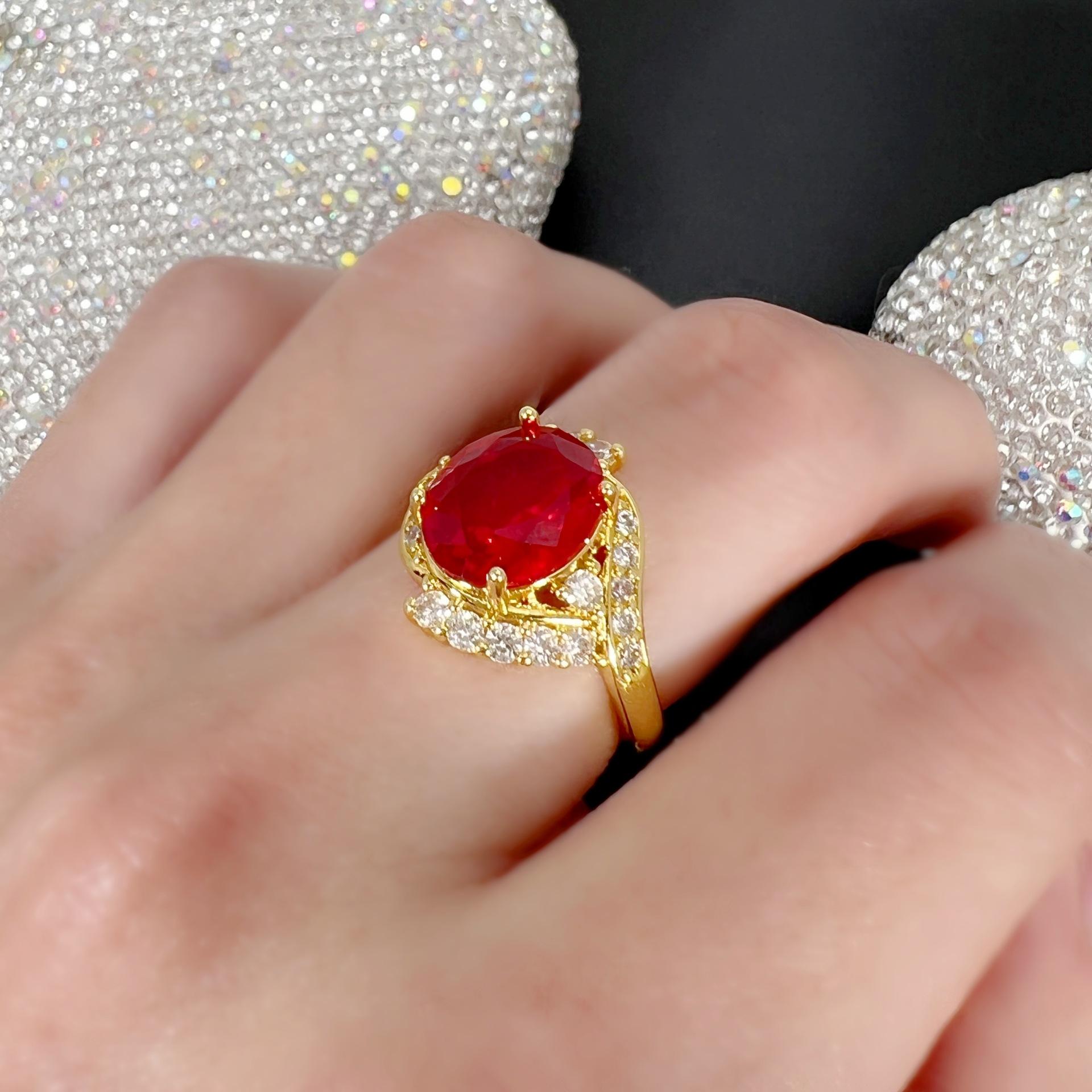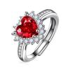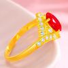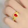 Anillo de rubí con diseño en forma de corazón chapado en oro, abierto, de moda, alegre, romántico, con grupo de diamantes rojos incrustados, anillo de circonita