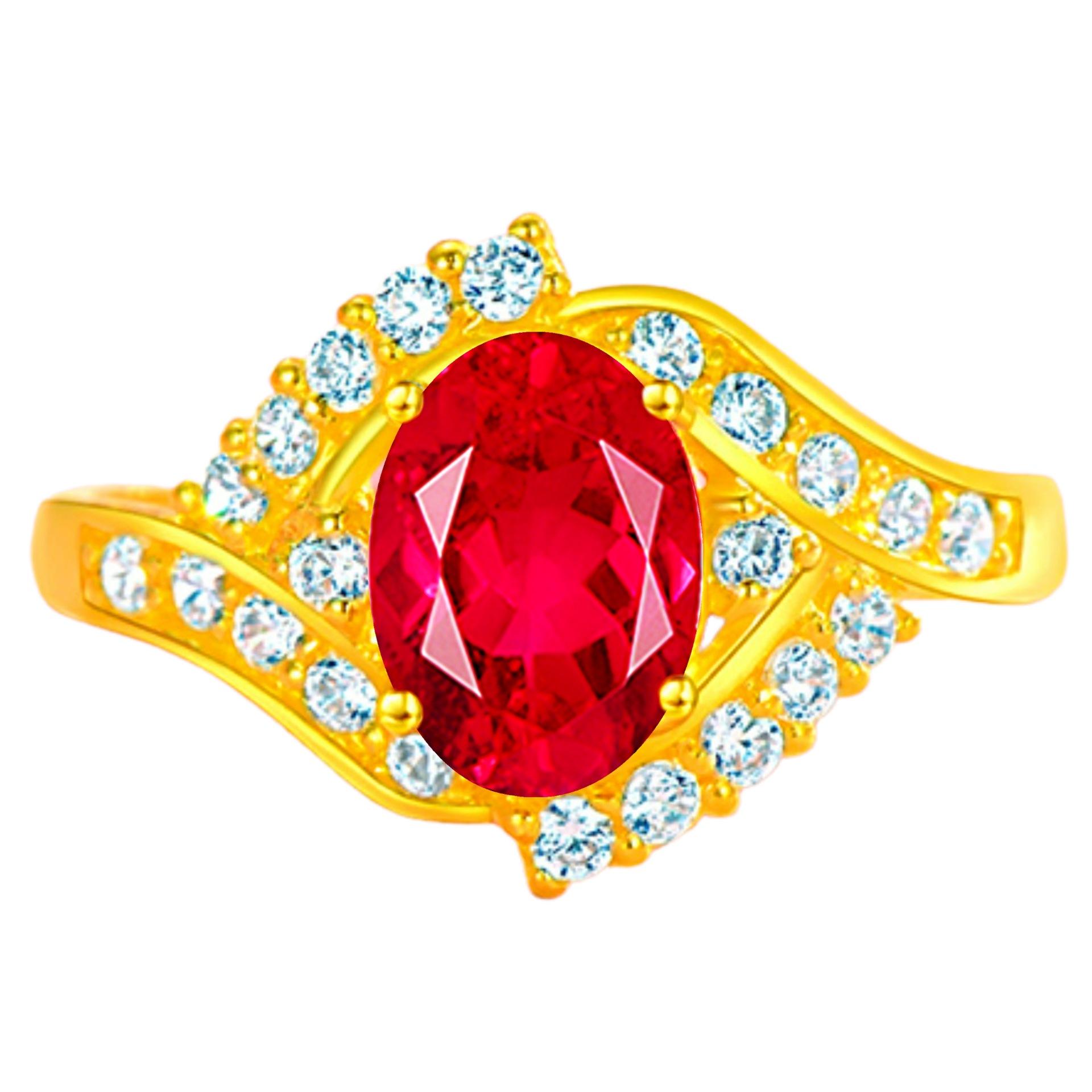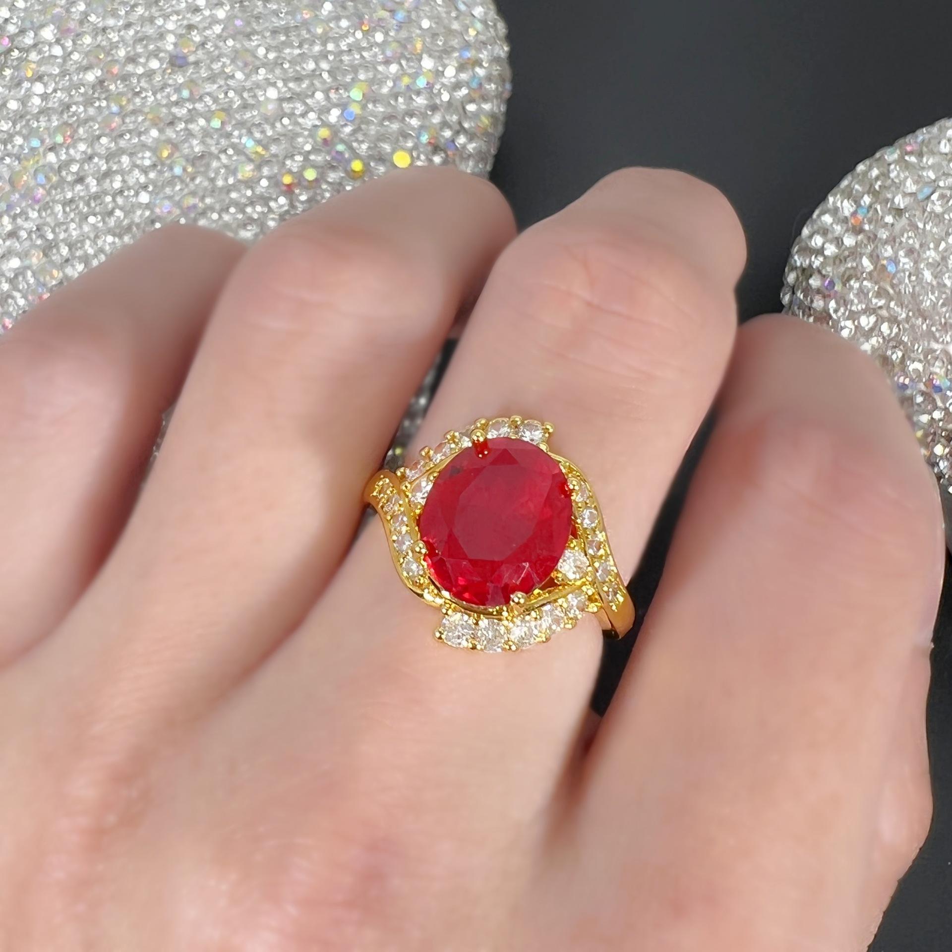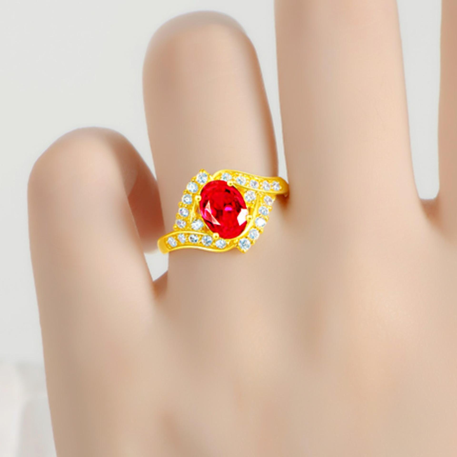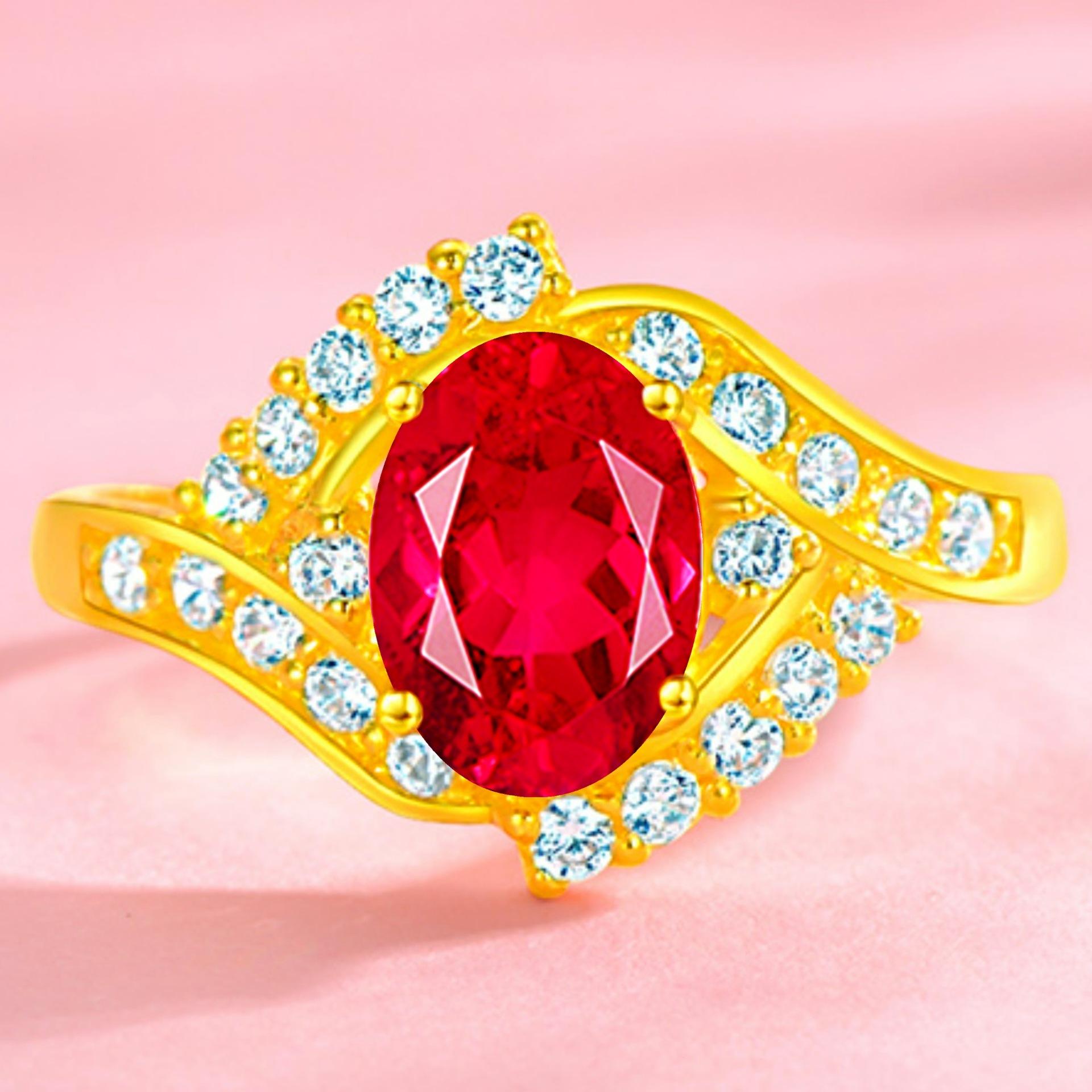 Anillo de rubí con diseño en forma de corazón chapado en oro, abierto, de moda, alegre, romántico, con grupo de diamantes rojos incrustados, anillo de circonita
