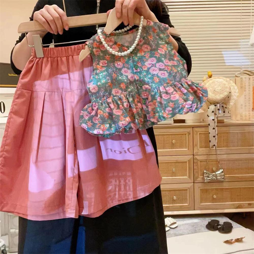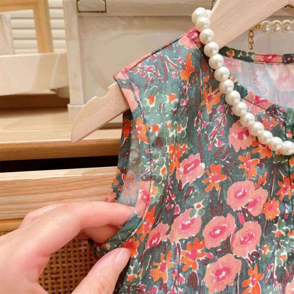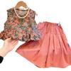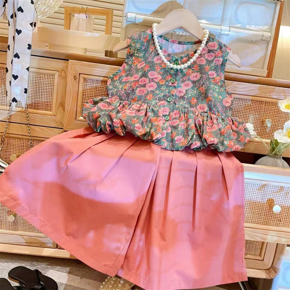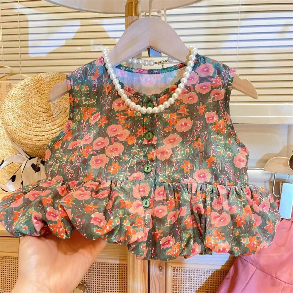 Ropa Infantil Transfronteriza al Por Mayor Trajes de Niña 2024 Verano Nuevo Tops sin Mangas con Chaleco Floral para Niños y Culottes Dos