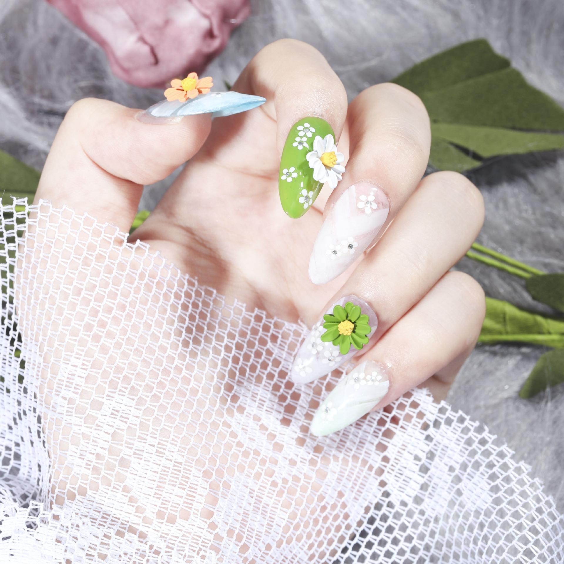Manicura Flor de Cinco Pétalos Joyería Estéreo Aleación Esmerilada Pequeño Crisantemo Arrugado Sólida Pequeña Flor Blanca DIY Decoración de Diamantes para Uñas Venta al por Mayor