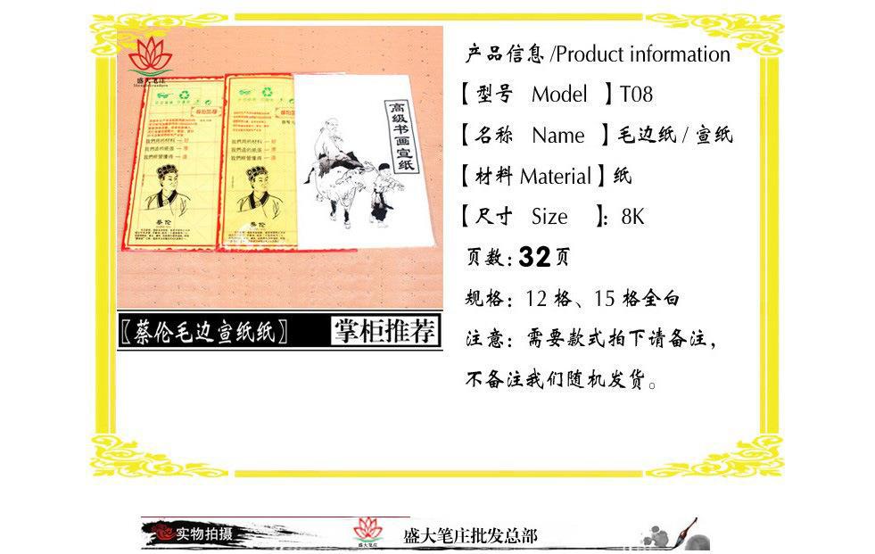 Cai Lun 8-Abierto Práctica de Caligrafía Papel de Arroz Borde Crudo 12 15 Cuadrículas Papel para Pincel de Escritura para Estudiantes de Primaria y Secundaria