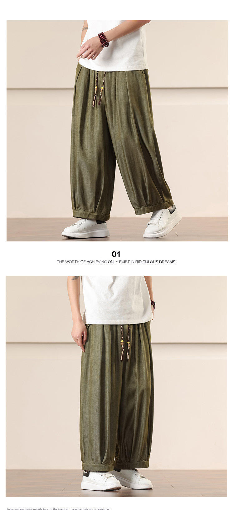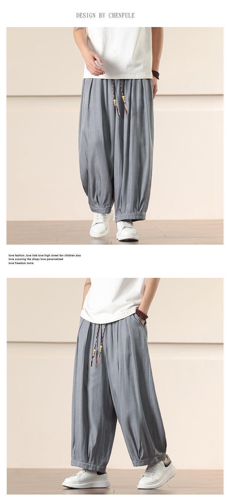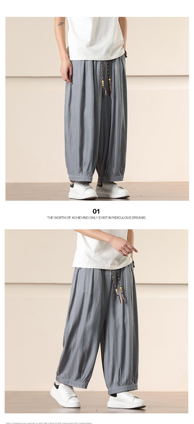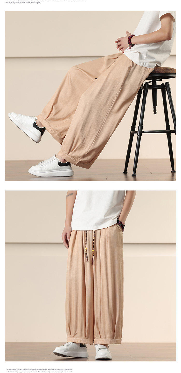 Compra Primavera/Verano 2025 Nuevo Estilo Chino Pantalones Harem de Color Sólido Casuales Sueltos Talla Extra Pierna Ancha Pantalones Harem de Moda al por mayor en Joom.pro