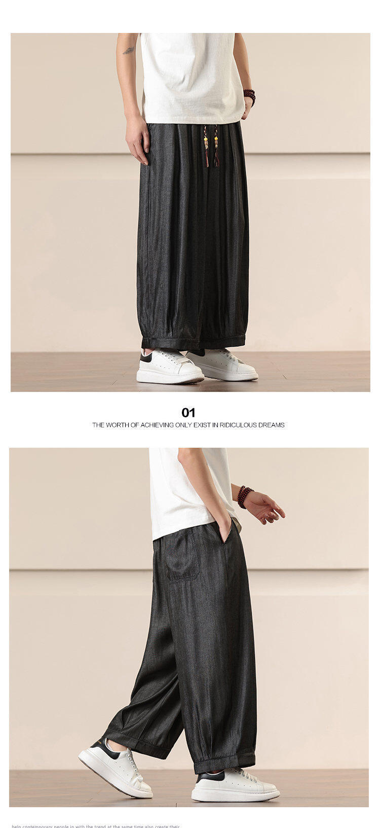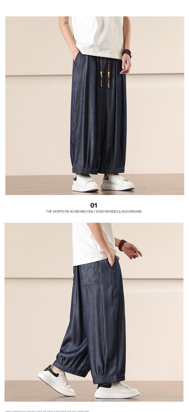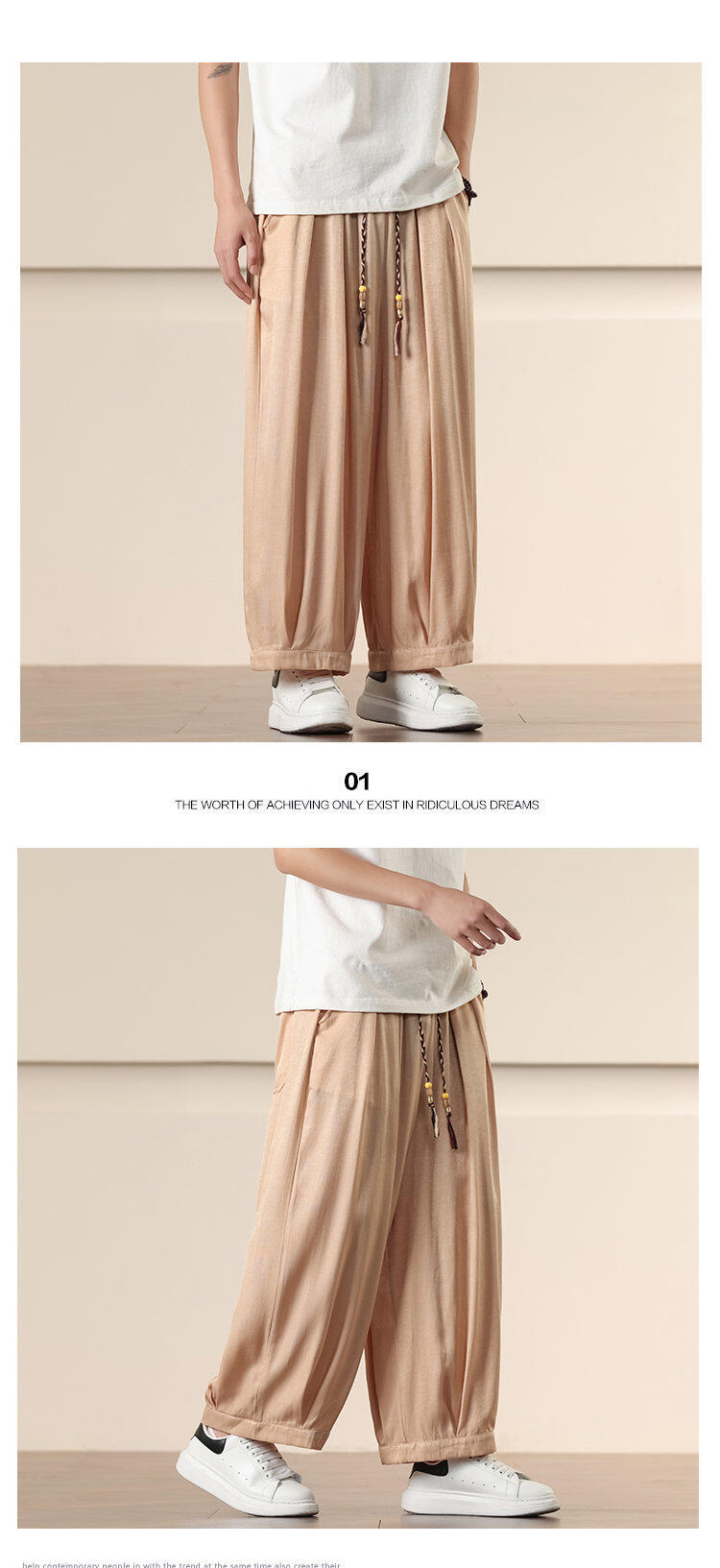 Compra Primavera/Verano 2025 Nuevo Estilo Chino Pantalones Harem de Color Sólido Casuales Sueltos Talla Extra Pierna Ancha Pantalones Harem de Moda al por mayor en Joom.pro