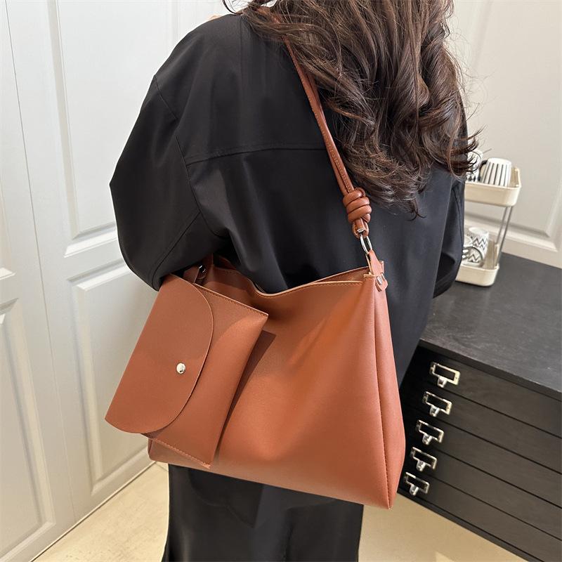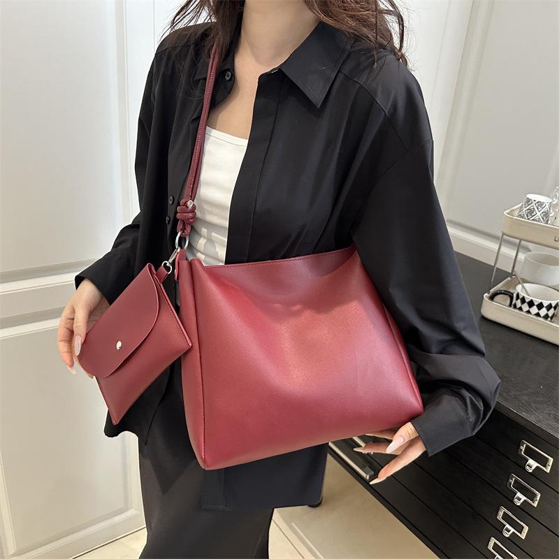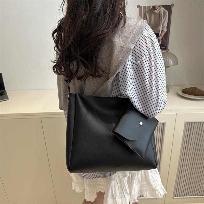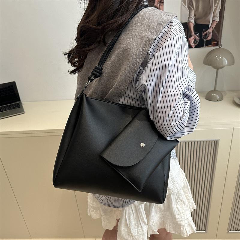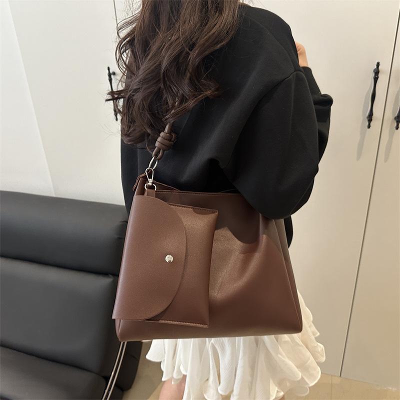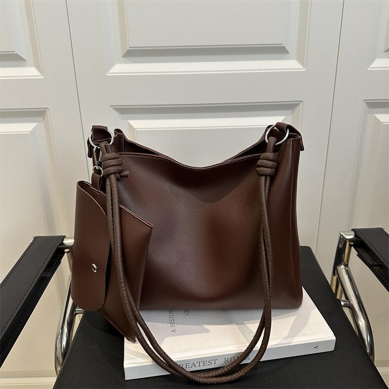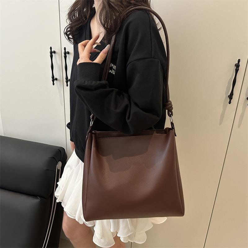 Textura de Alta Gama Popular Bolso Tote Nuevo de Gran Capacidad para Mujer Versátil Temperamento Color Sólido Moda Casual Bolso de Hombro