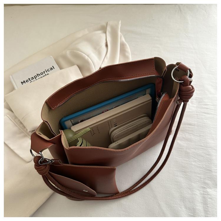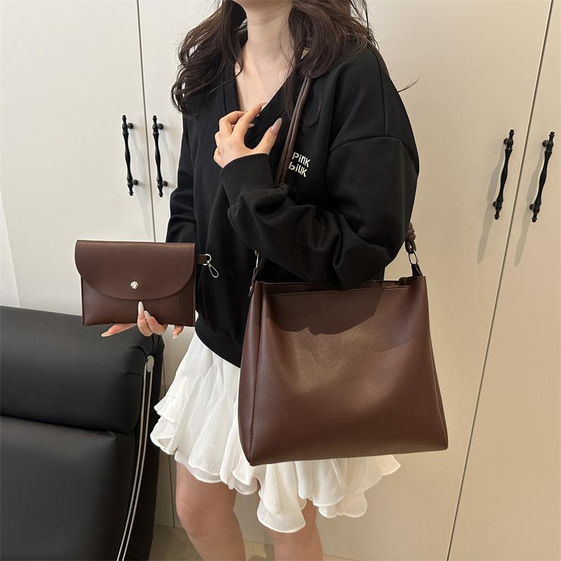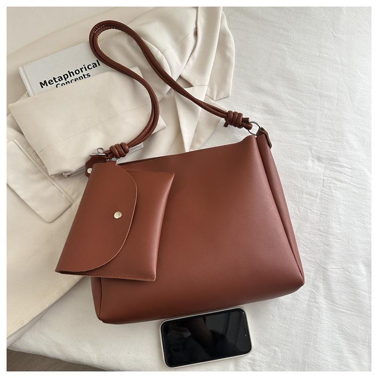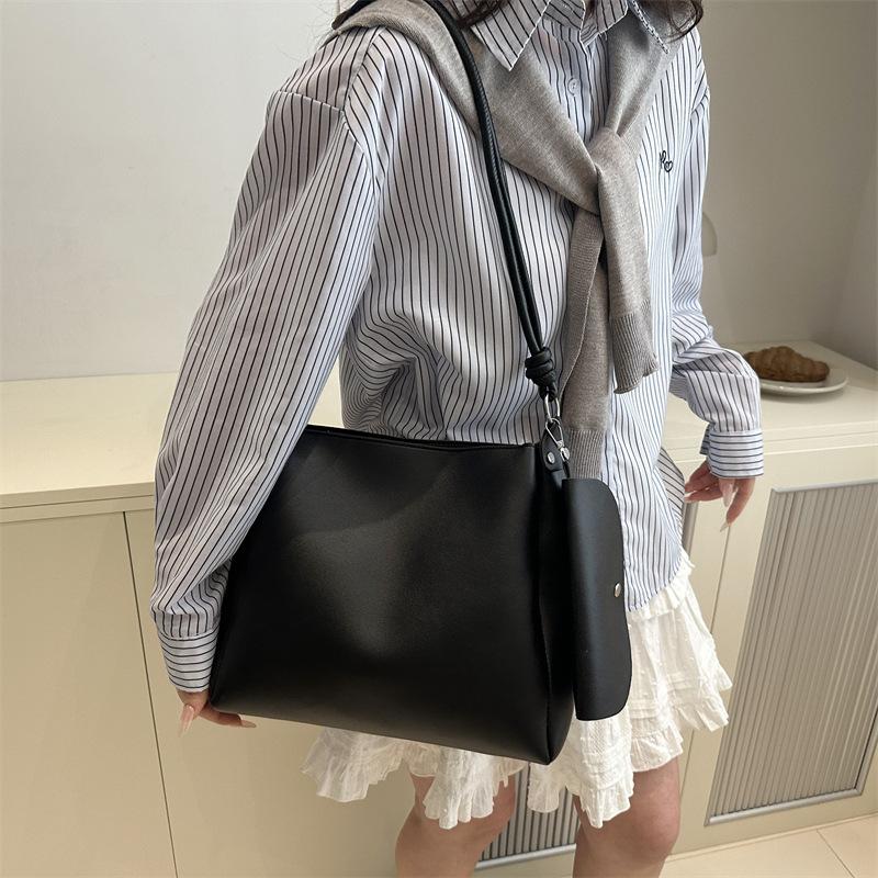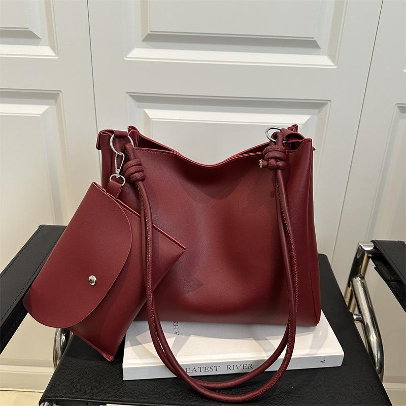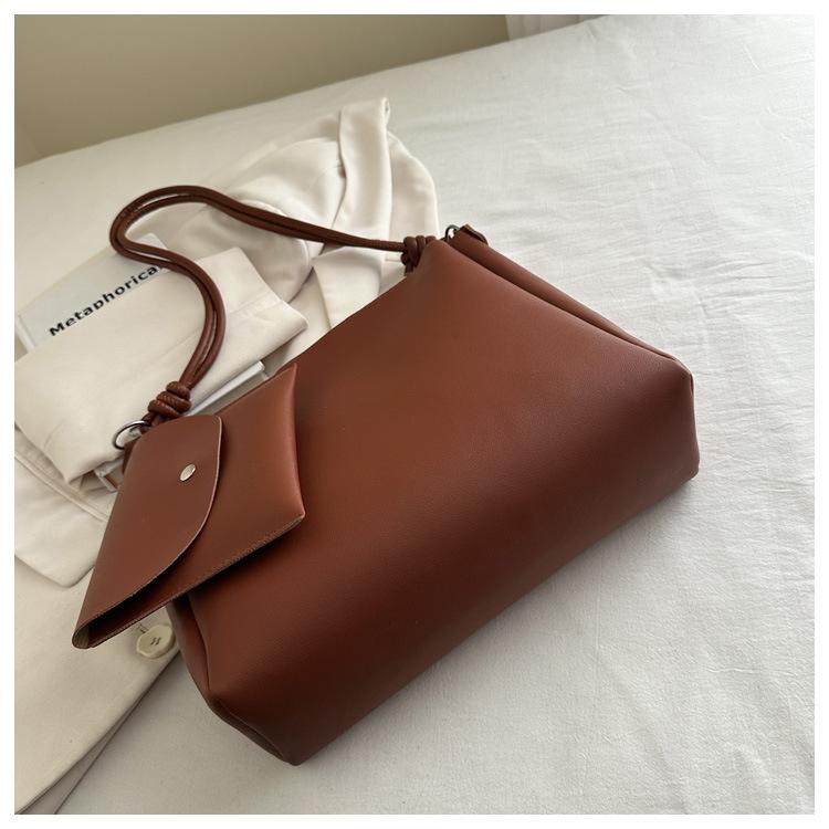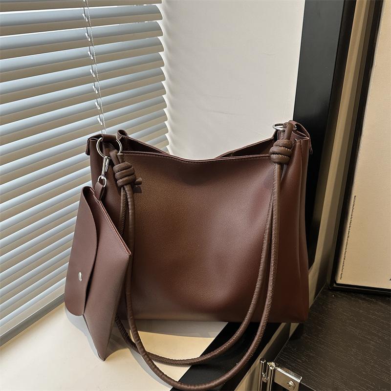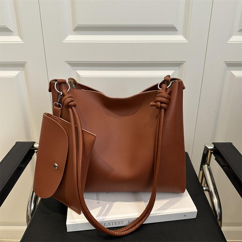 Textura de Alta Gama Popular Bolso Tote Nuevo de Gran Capacidad para Mujer Versátil Temperamento Color Sólido Moda Casual Bolso de Hombro