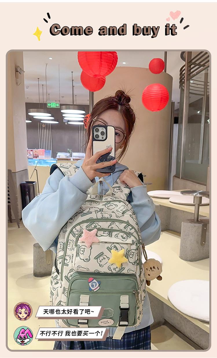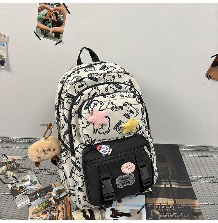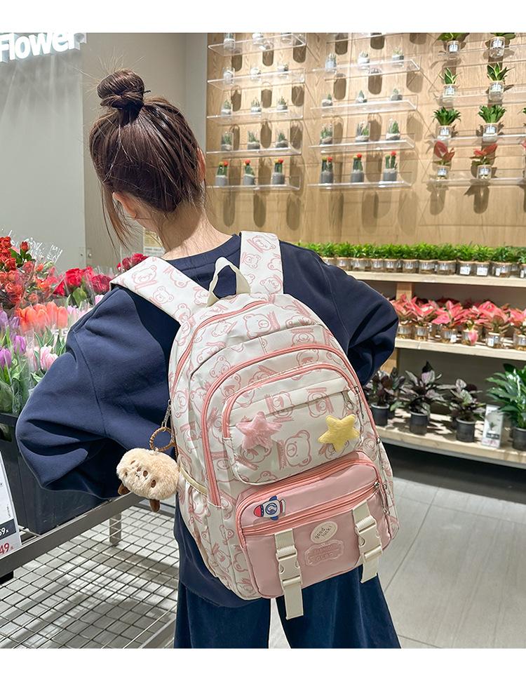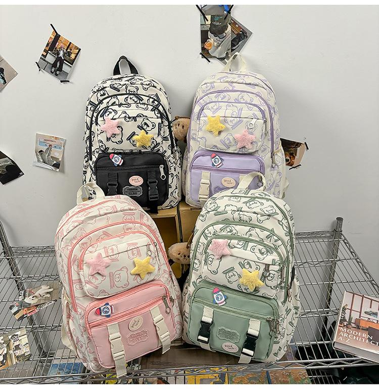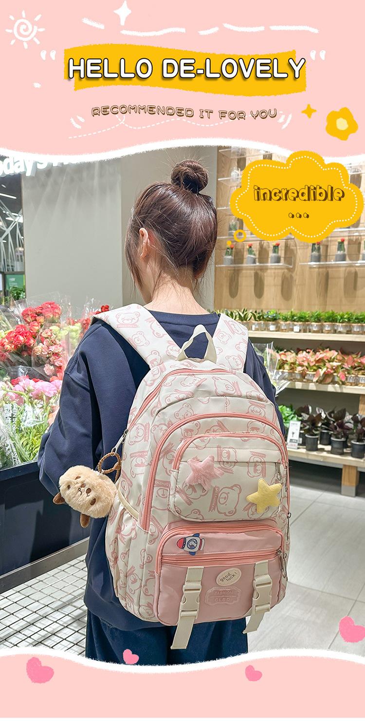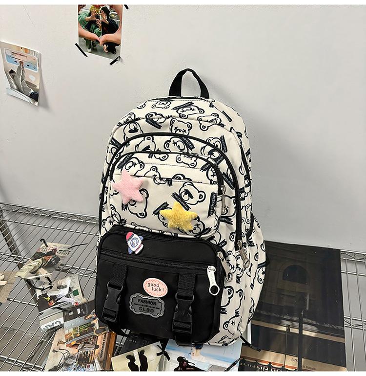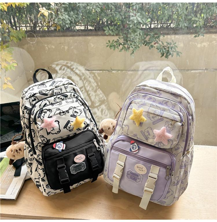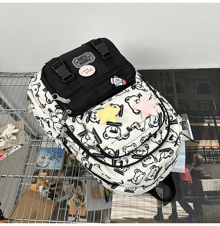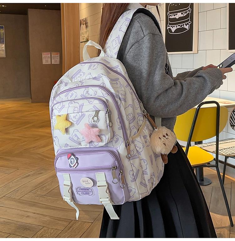 Mochila Transfronteriza Nueva de Estilo Japonés de Gran Capacidad para Estudiante de Secundaria Mochila Linda de Moda de Alto Valor con Estampado de Oso