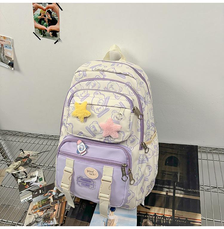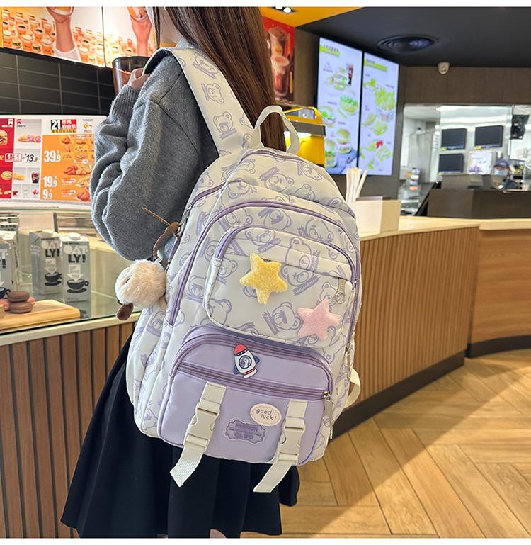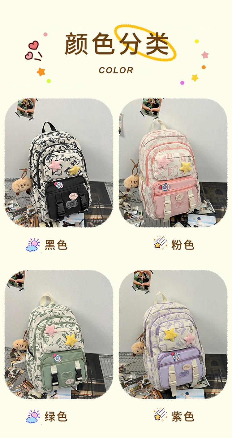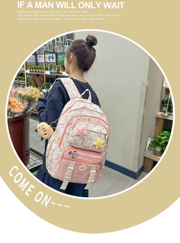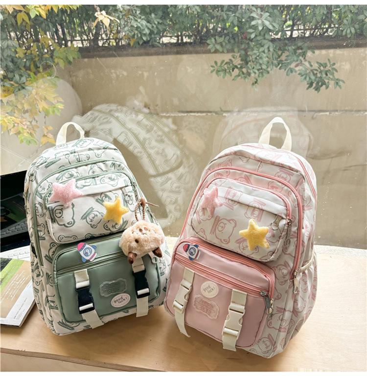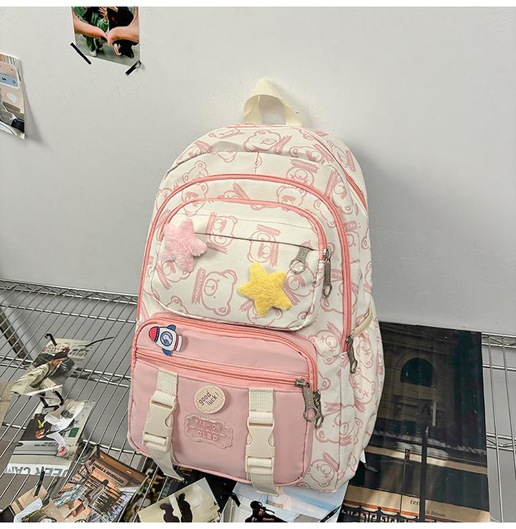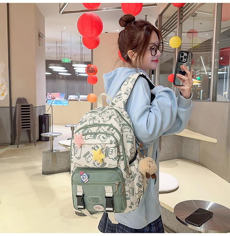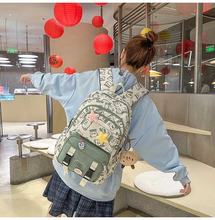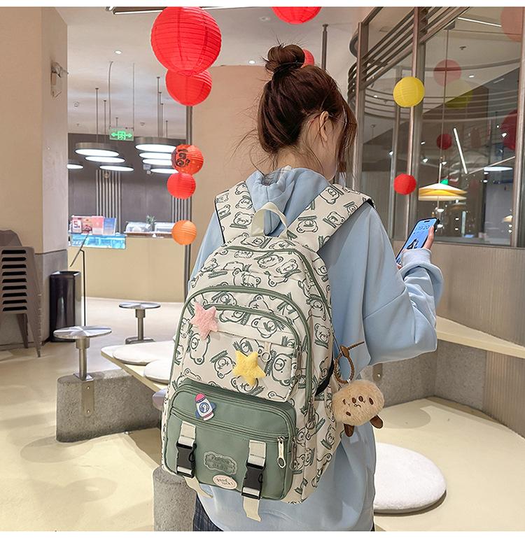 Mochila Transfronteriza Nueva de Estilo Japonés de Gran Capacidad para Estudiante de Secundaria Mochila Linda de Moda de Alto Valor con Estampado de Oso