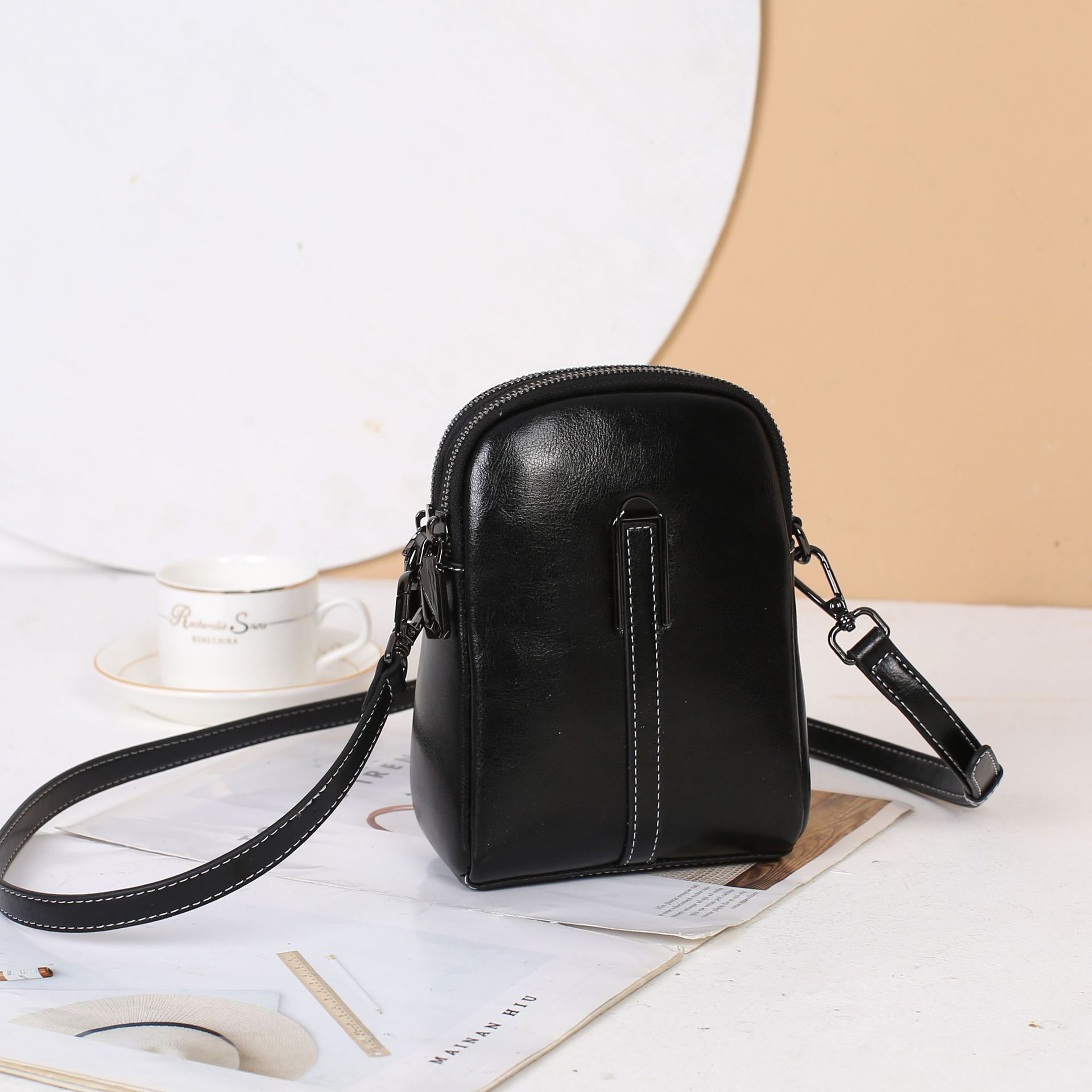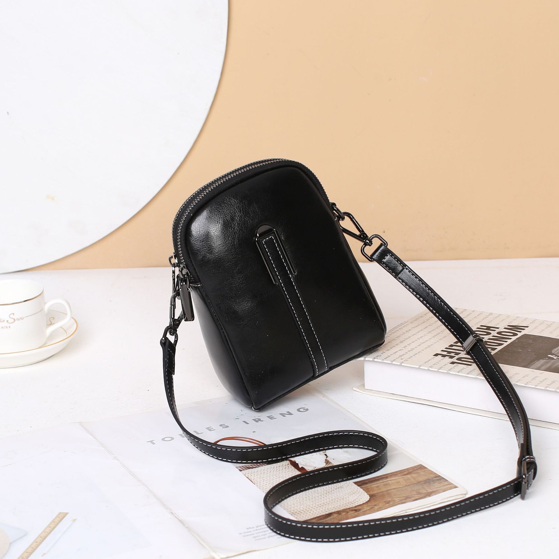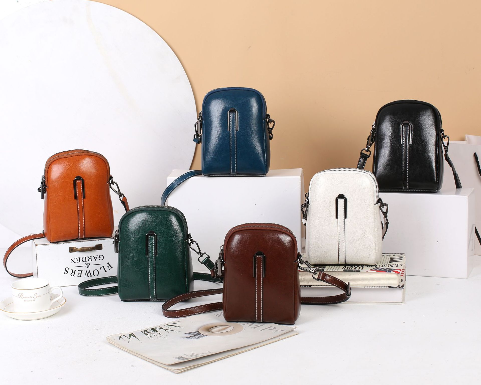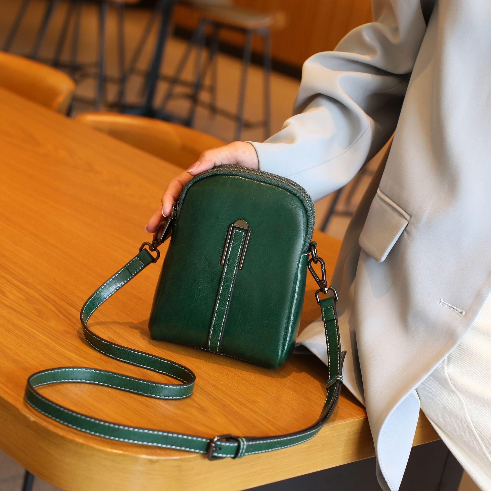 Bolso para teléfono de piel de vaca encerada al aceite de un solo hombro.